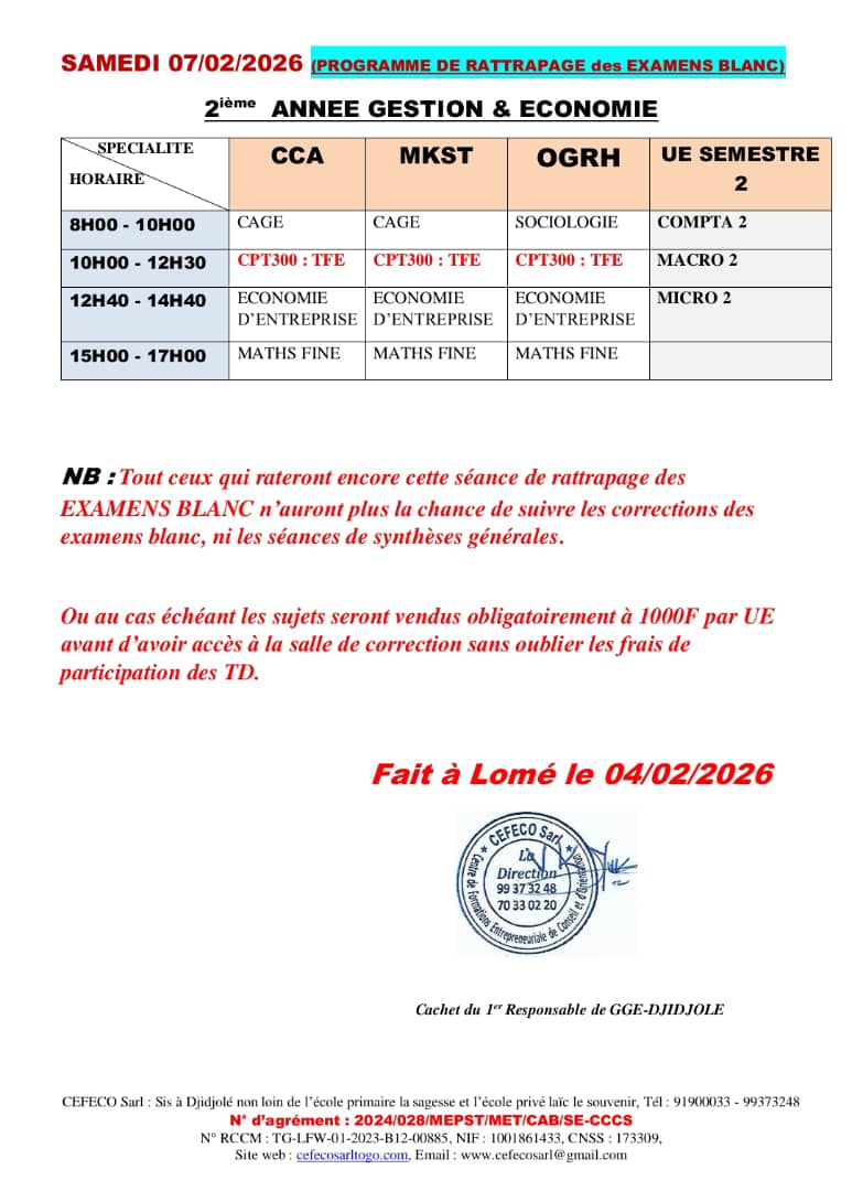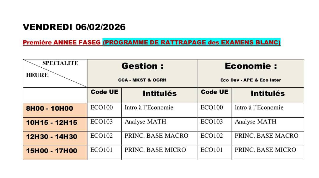 📚 Examens blancs FASEG 2026 : programme, rattrapages et informations importantes