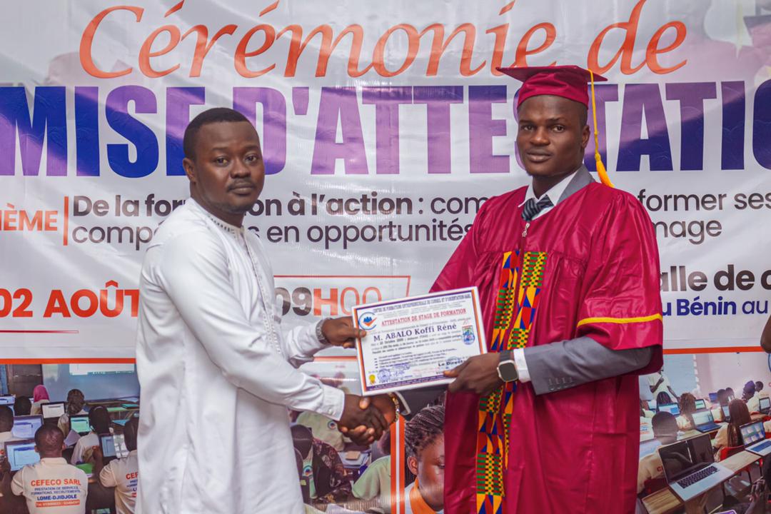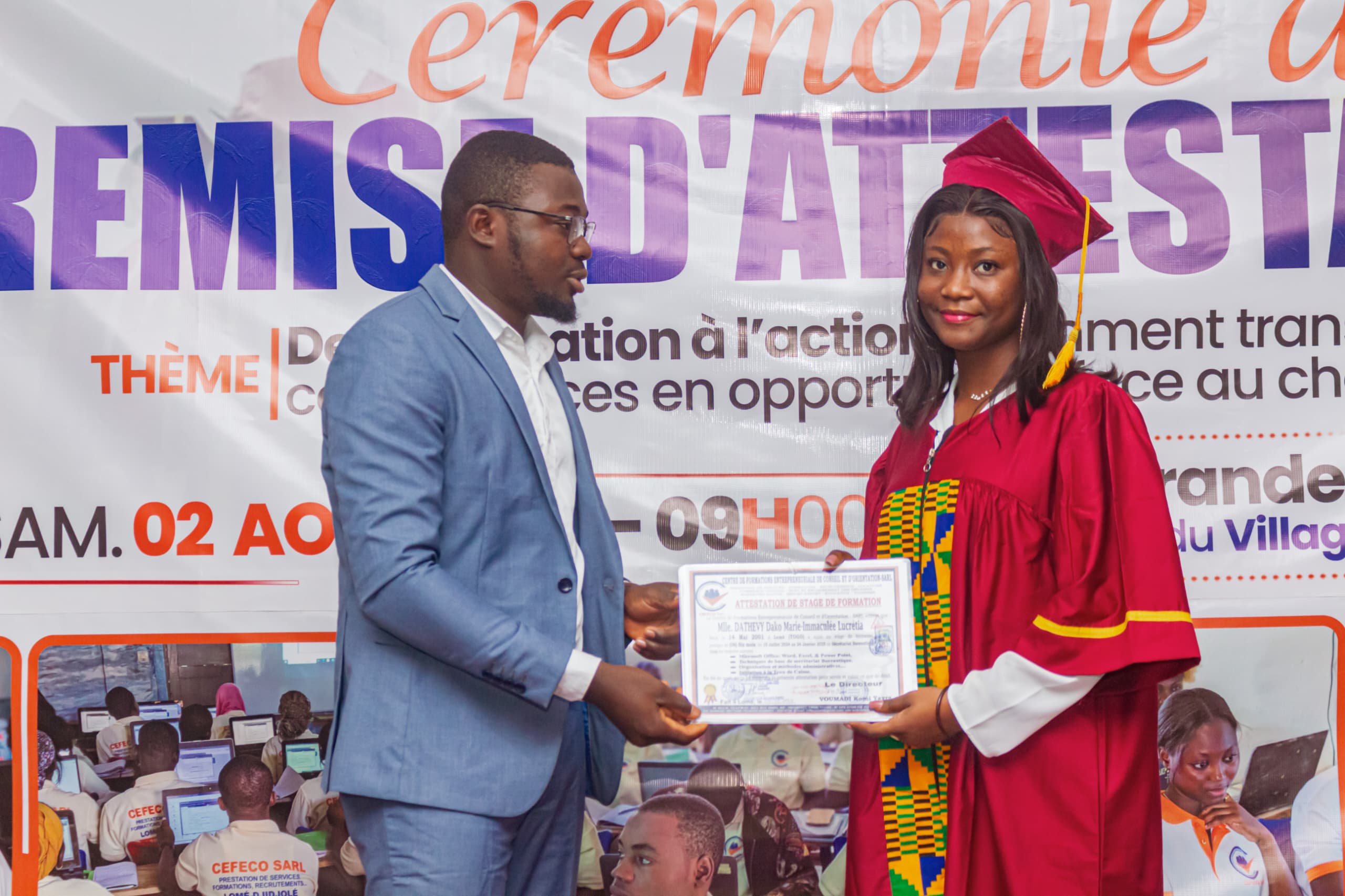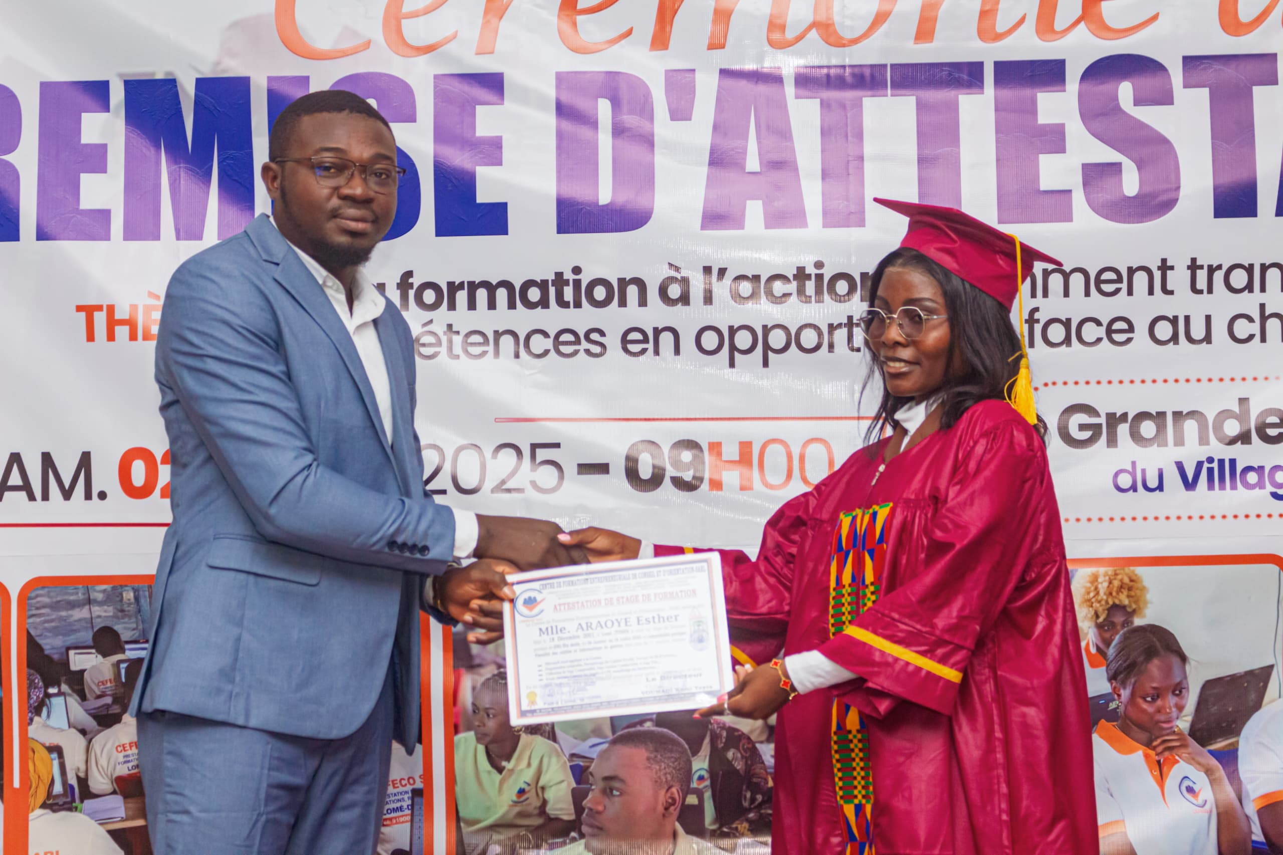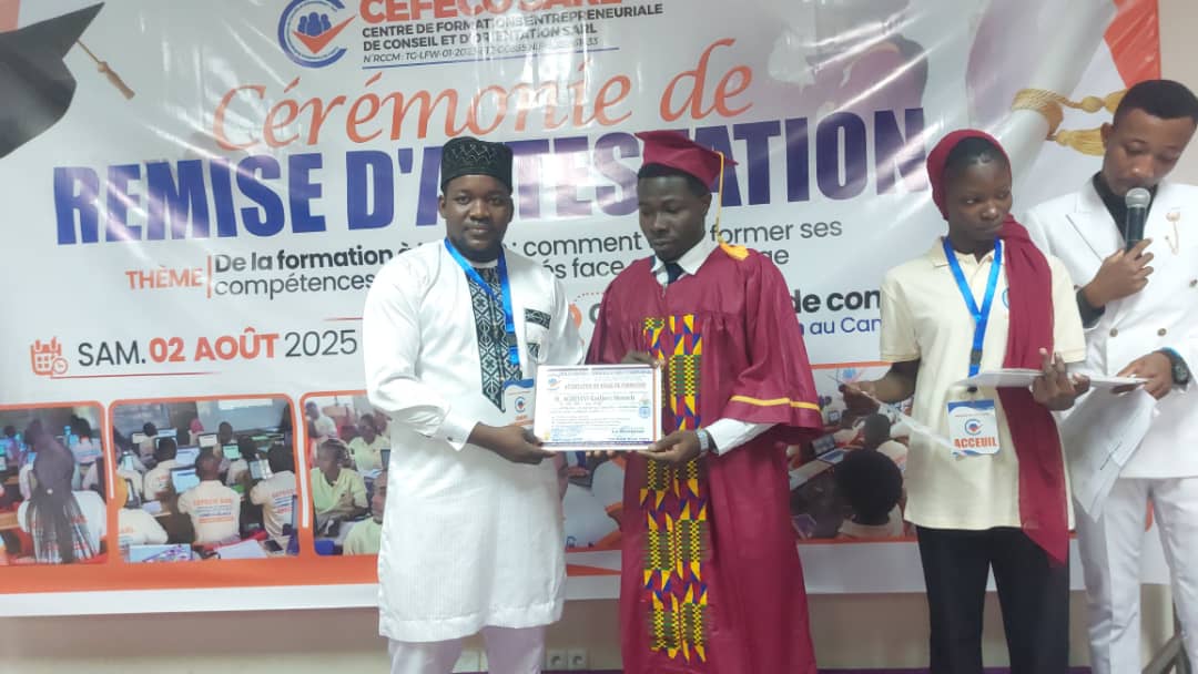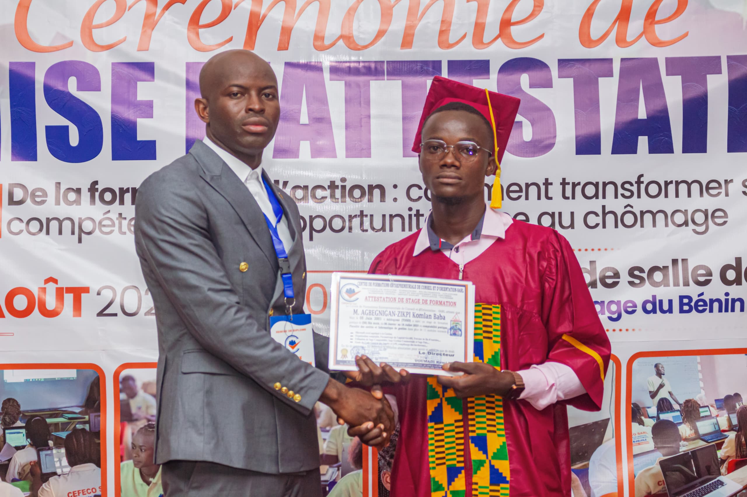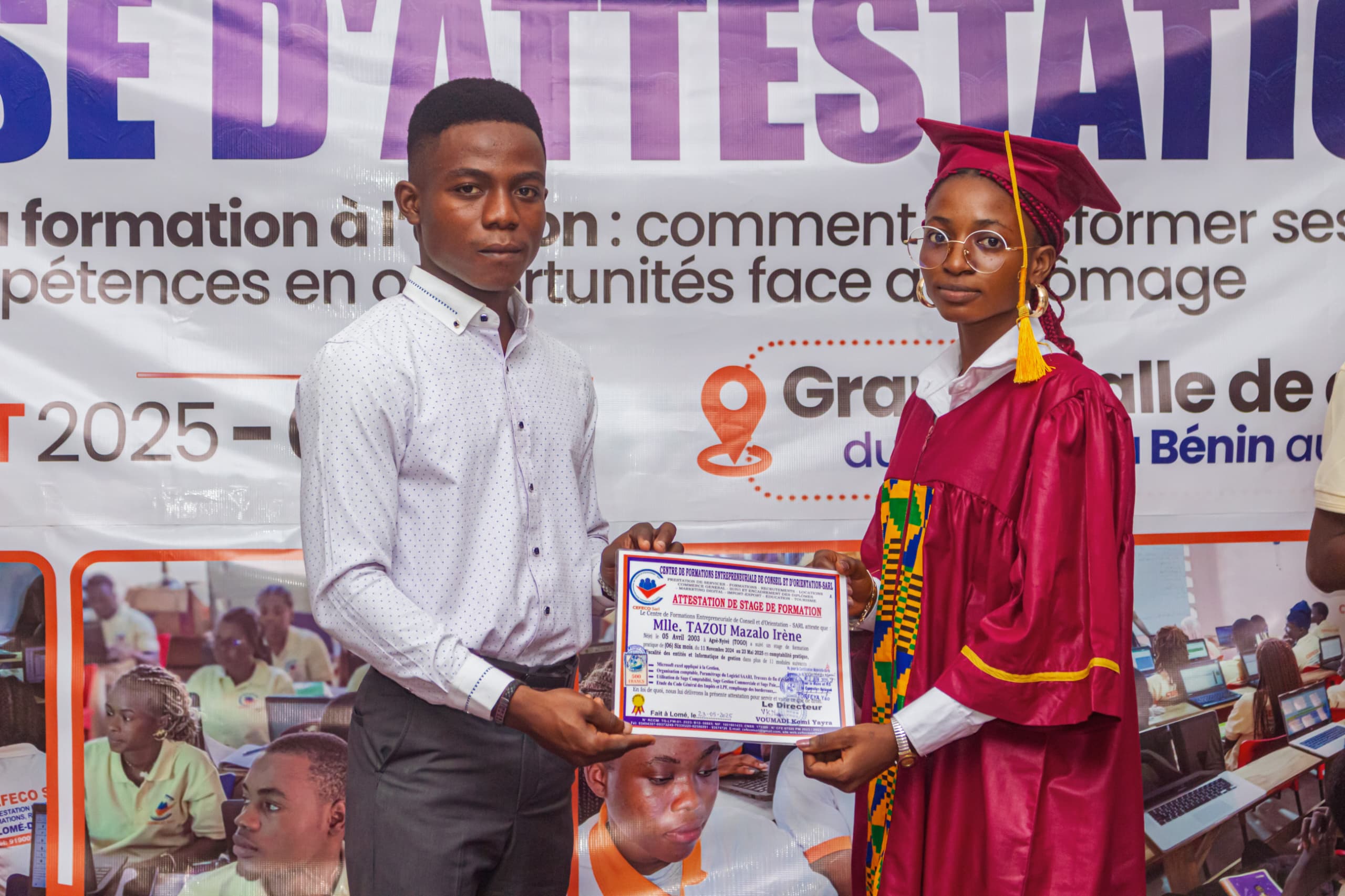 La cérémonie de remise d’attestations du Centre de Formations Entrepreneuriale de Conseil et d’Orientation SARL s’est tenue ce samedi 02 août 2025 dans la grande salle de conférence du Village du Bénin, au Campus Sud. Entre sourires, accolades et discours inspirants, cette journée a marqué l’aboutissement d’un parcours intense pour nos apprenants. Découvrez à travers ces photos l’ambiance festive et l’émotion palpable qui ont rythmé cet événement exceptionnel.