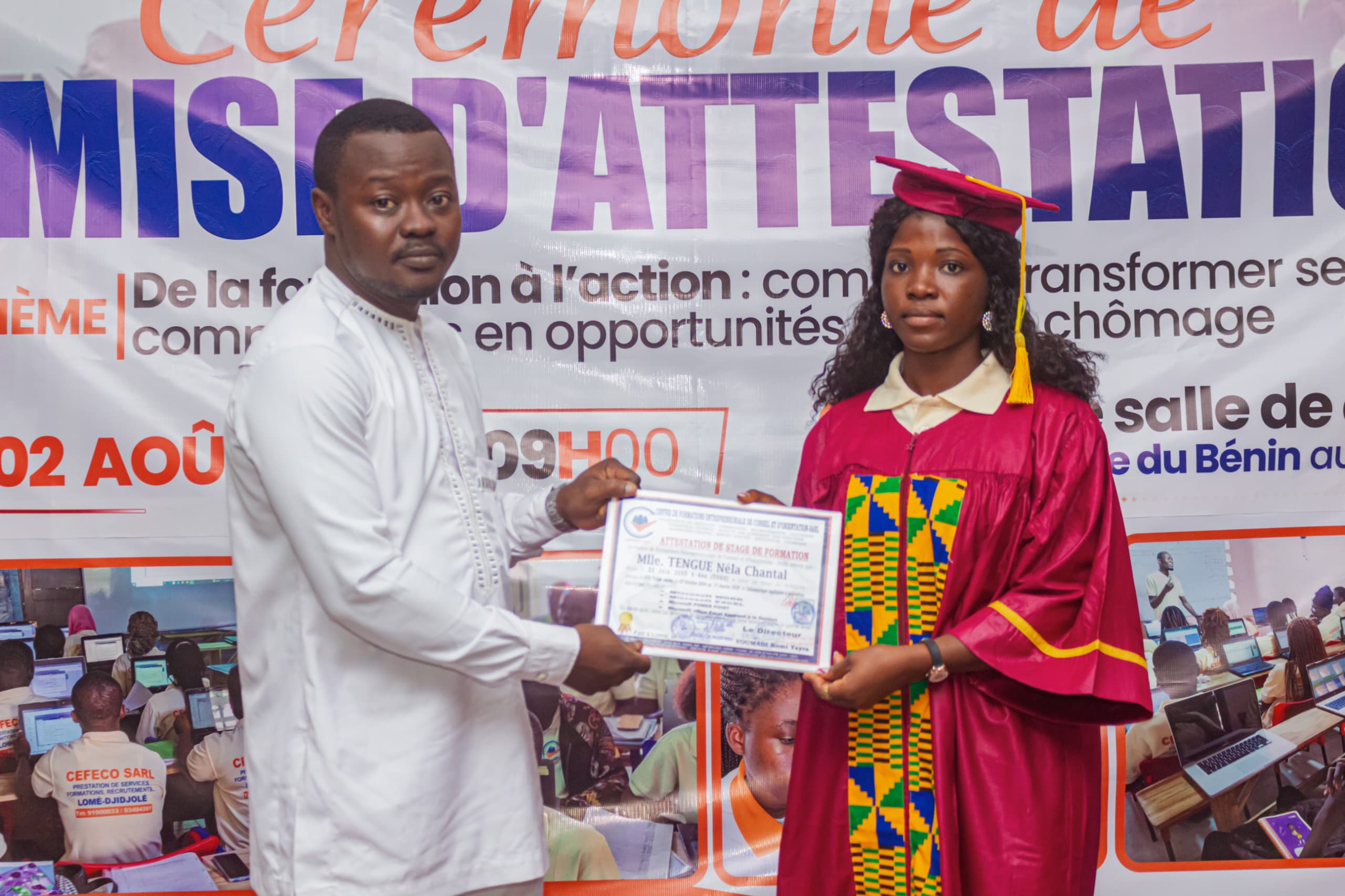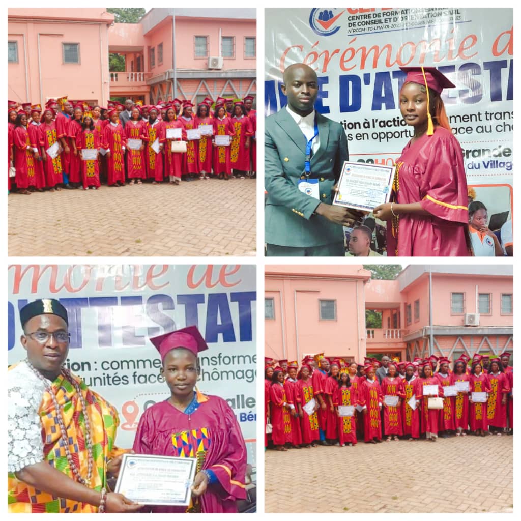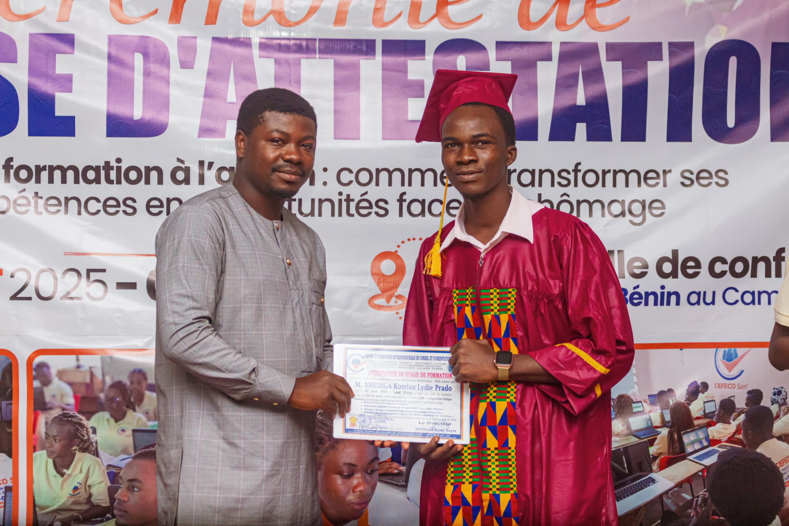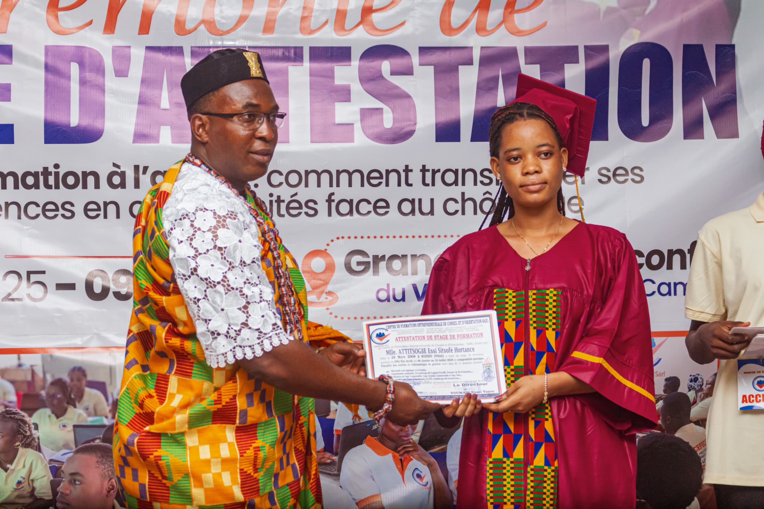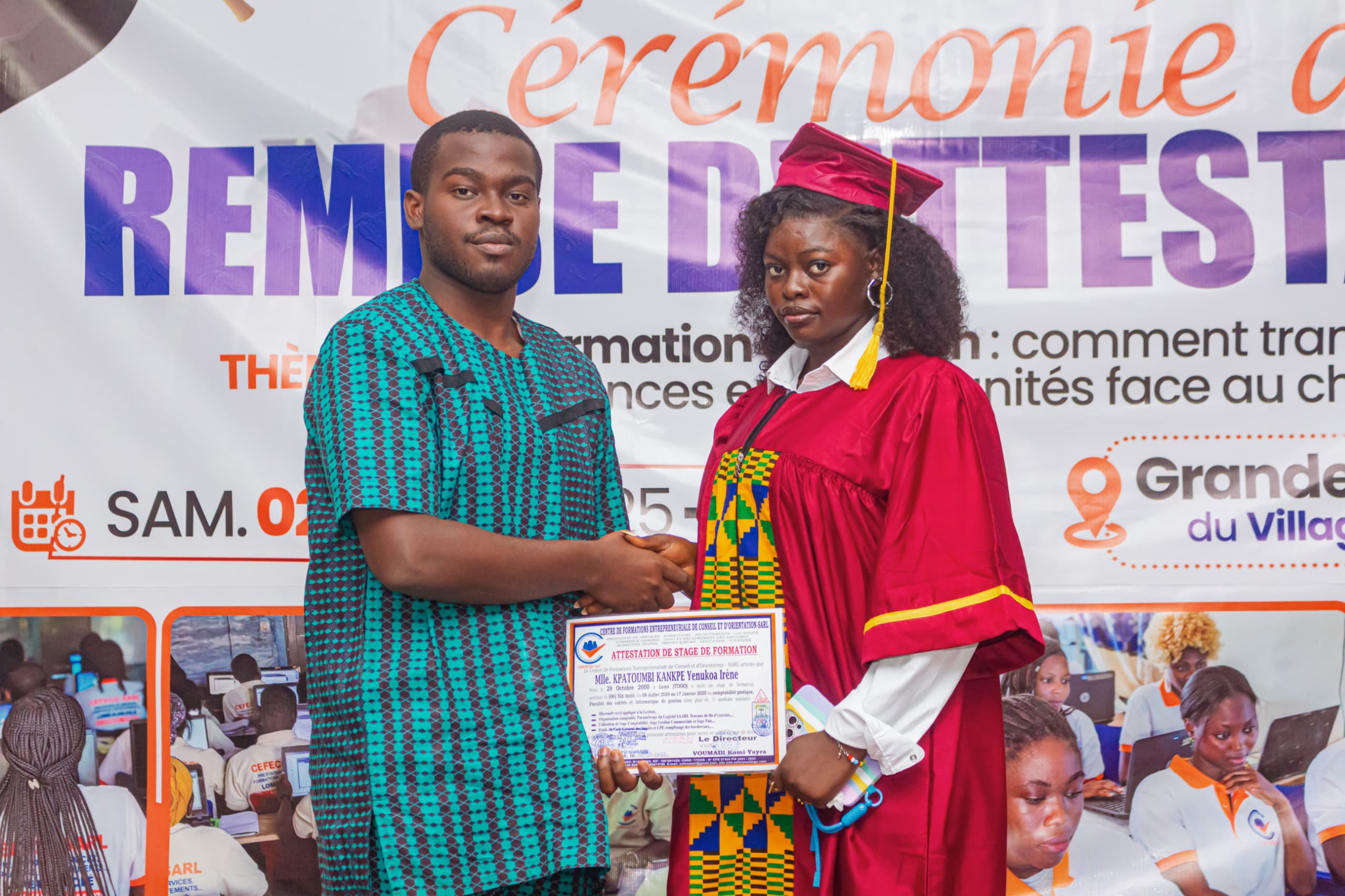 La cérémonie de remise d’attestations du Centre de Formations Entrepreneuriale de Conseil et d’Orientation SARL s’est tenue ce samedi 02 août 2025 dans la grande salle de conférence du Village du Bénin, au Campus Sud. Entre sourires, accolades et discours inspirants, cette journée a marqué l’aboutissement d’un parcours intense pour nos apprenants. Découvrez à travers ces photos l’ambiance festive et l’émotion palpable qui ont rythmé cet événement exceptionnel.