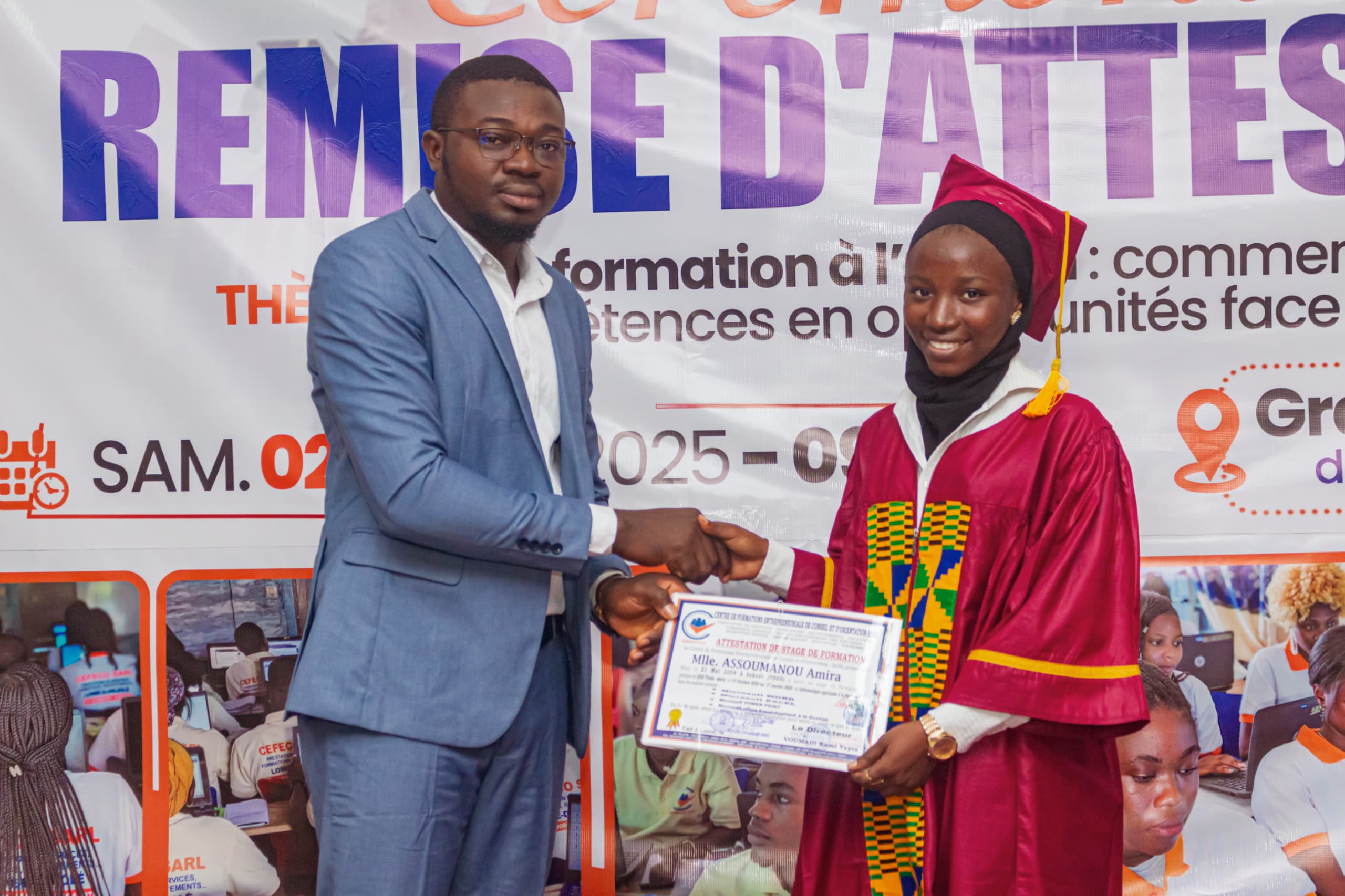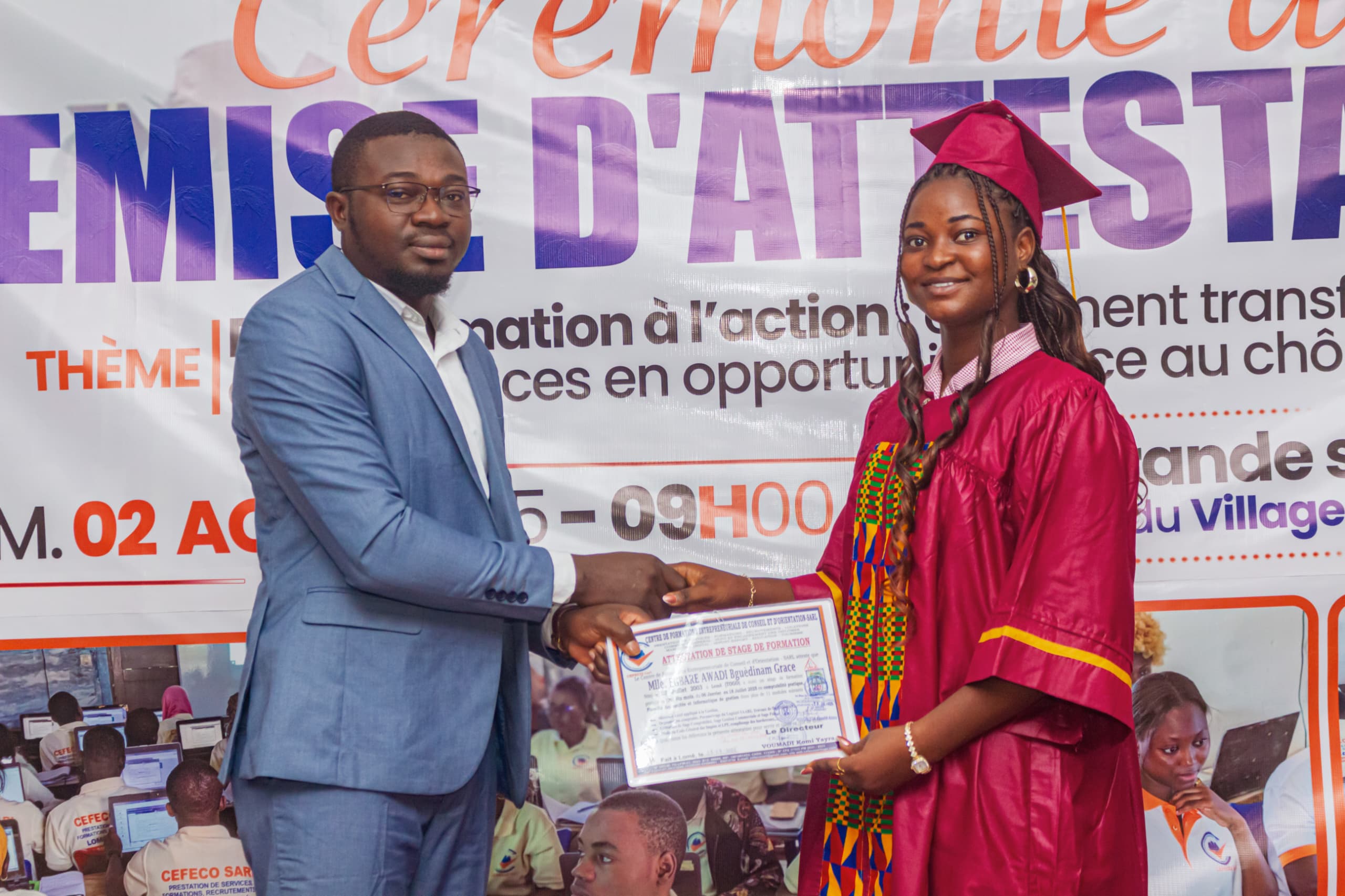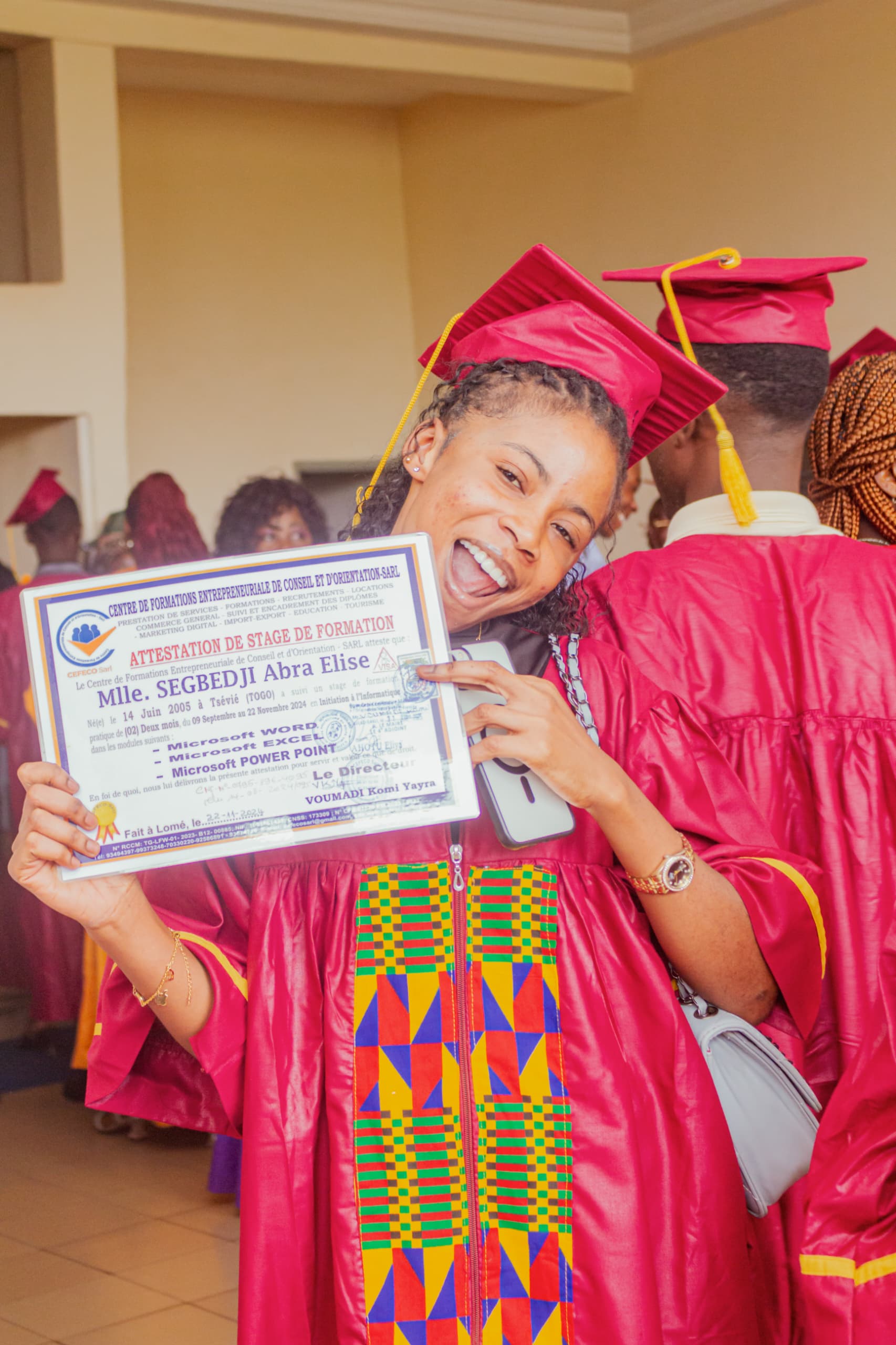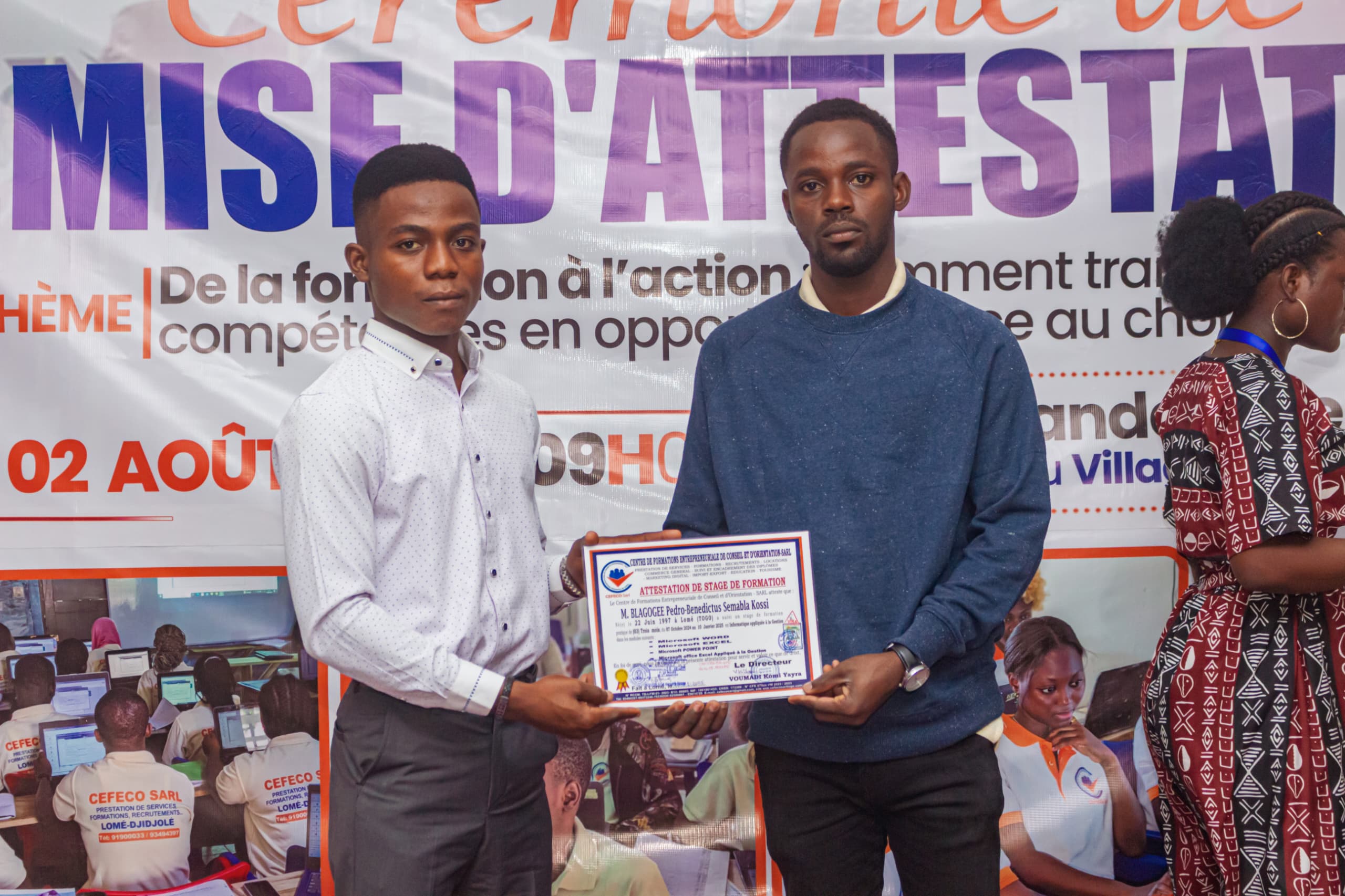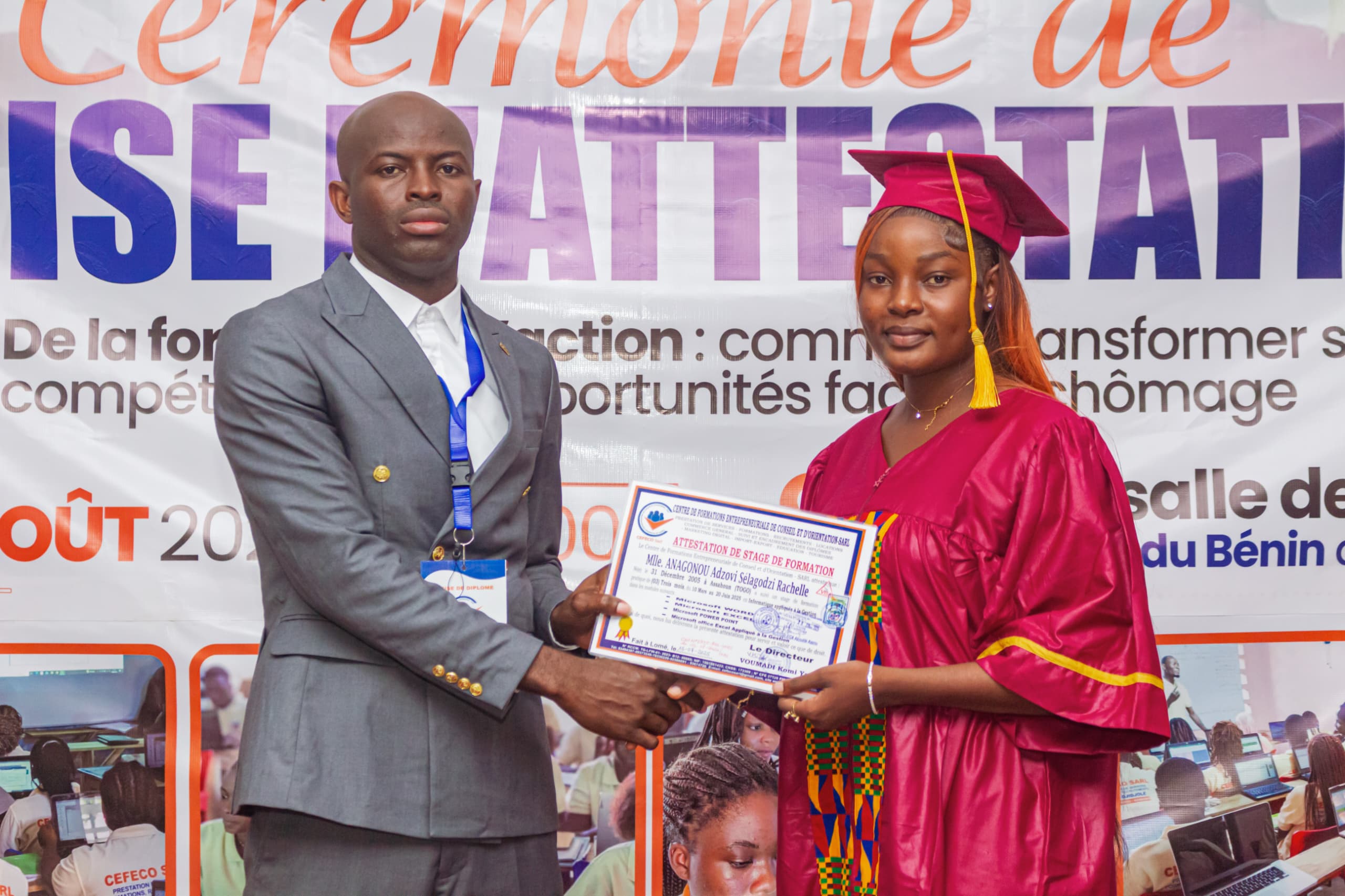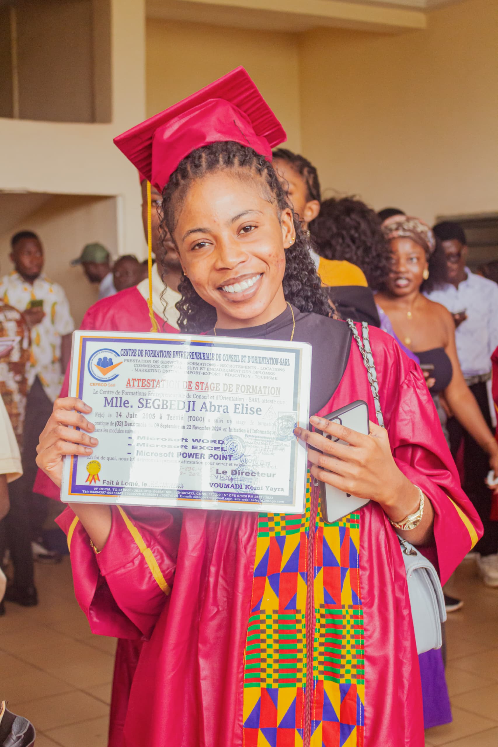 La cérémonie de remise d’attestations du Centre de Formations Entrepreneuriale de Conseil et d’Orientation SARL s’est tenue ce samedi 02 août 2025 dans la grande salle de conférence du Village du Bénin, au Campus Sud. Entre sourires, accolades et discours inspirants, cette journée a marqué l’aboutissement d’un parcours intense pour nos apprenants. Découvrez à travers ces photos l’ambiance festive et l’émotion palpable qui ont rythmé cet événement exceptionnel.