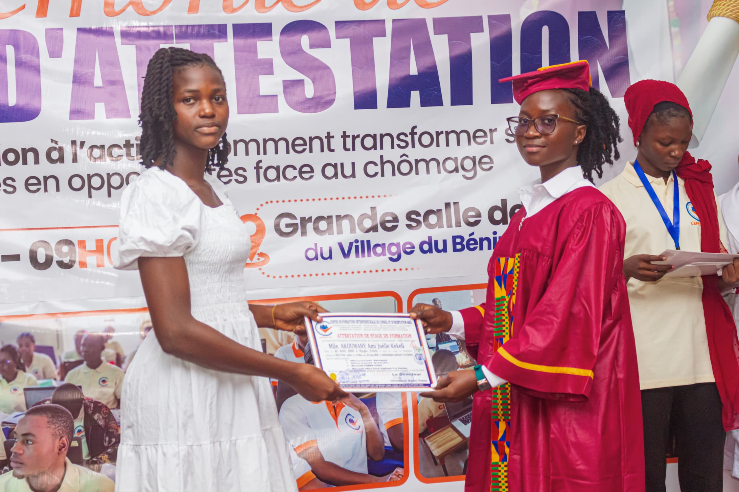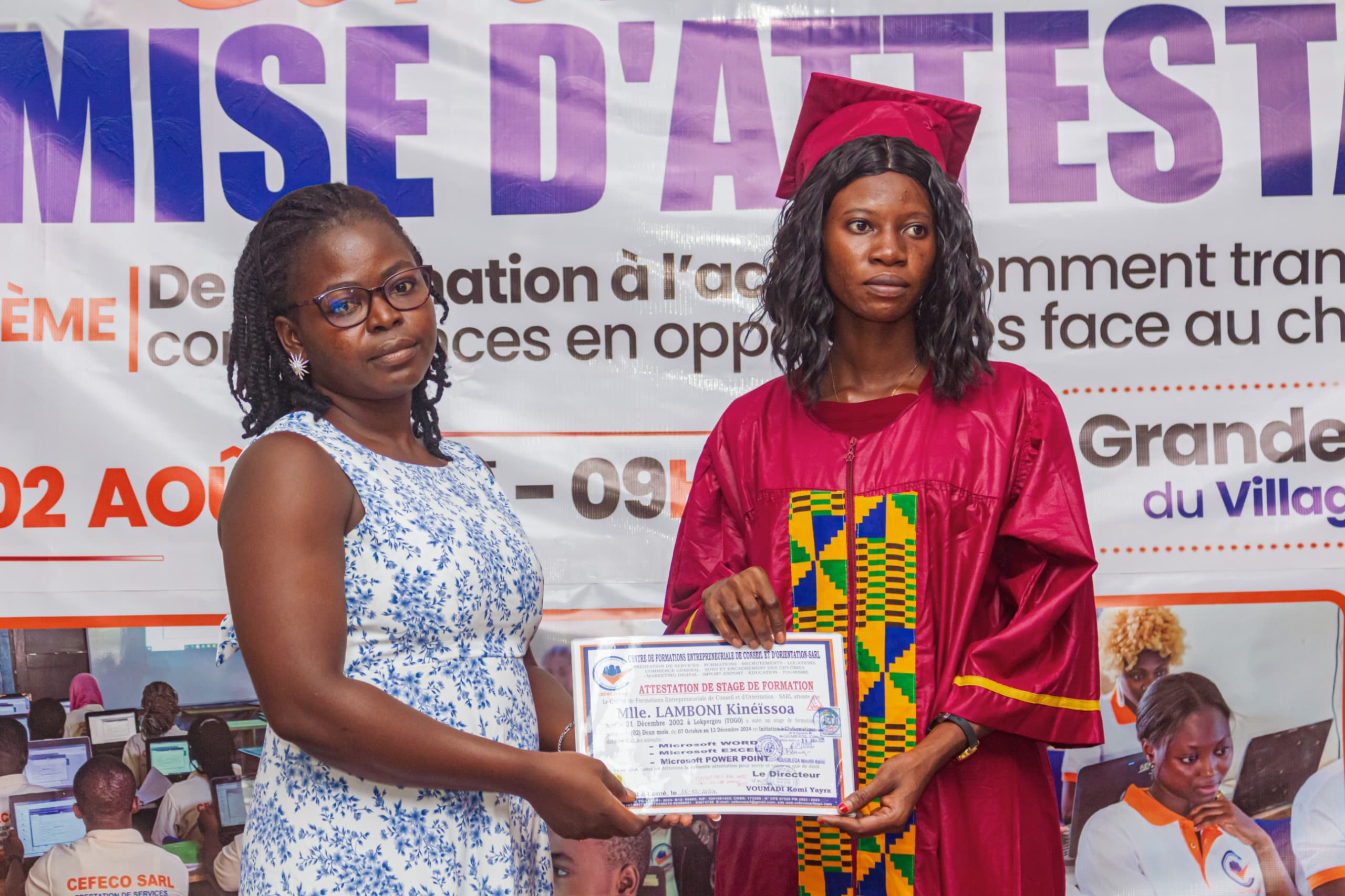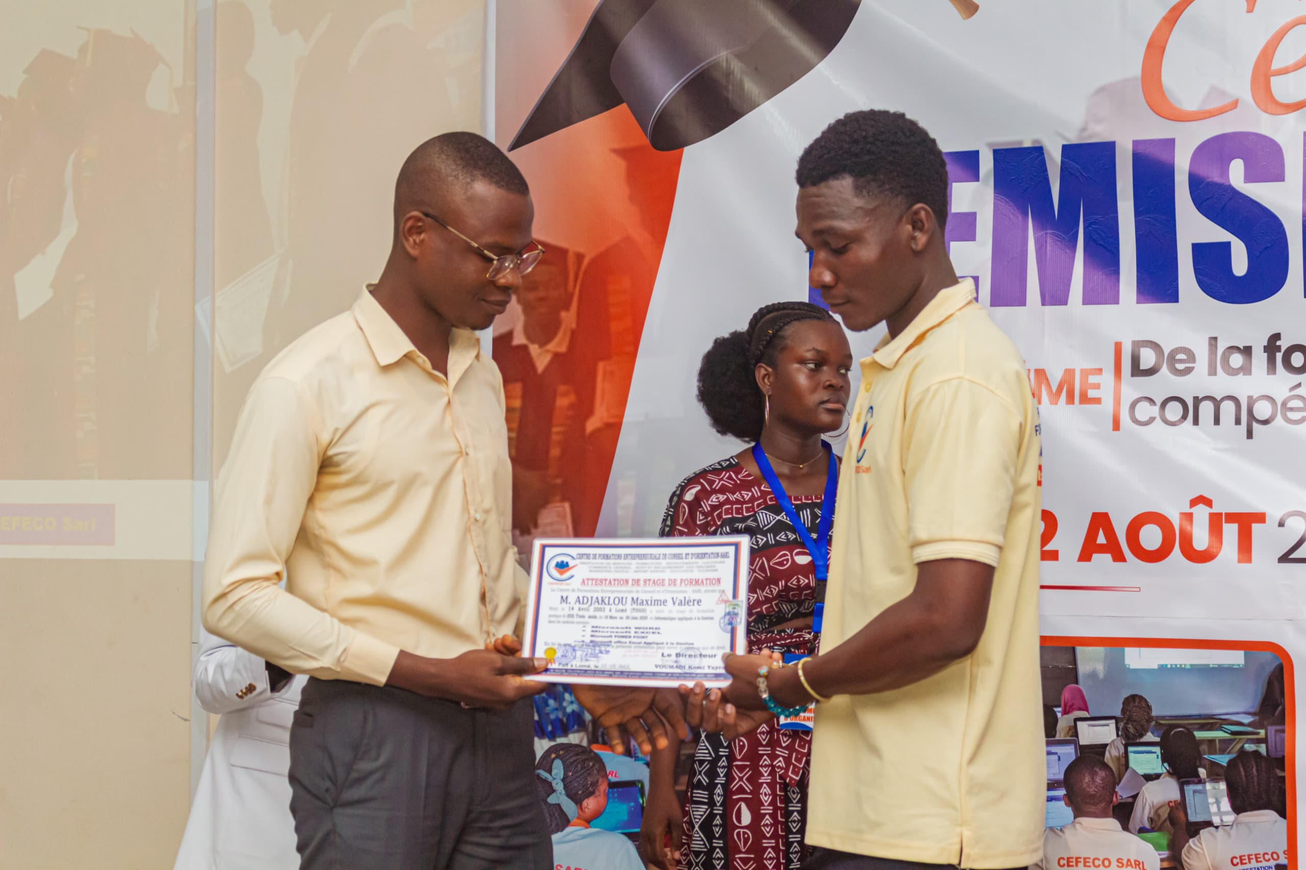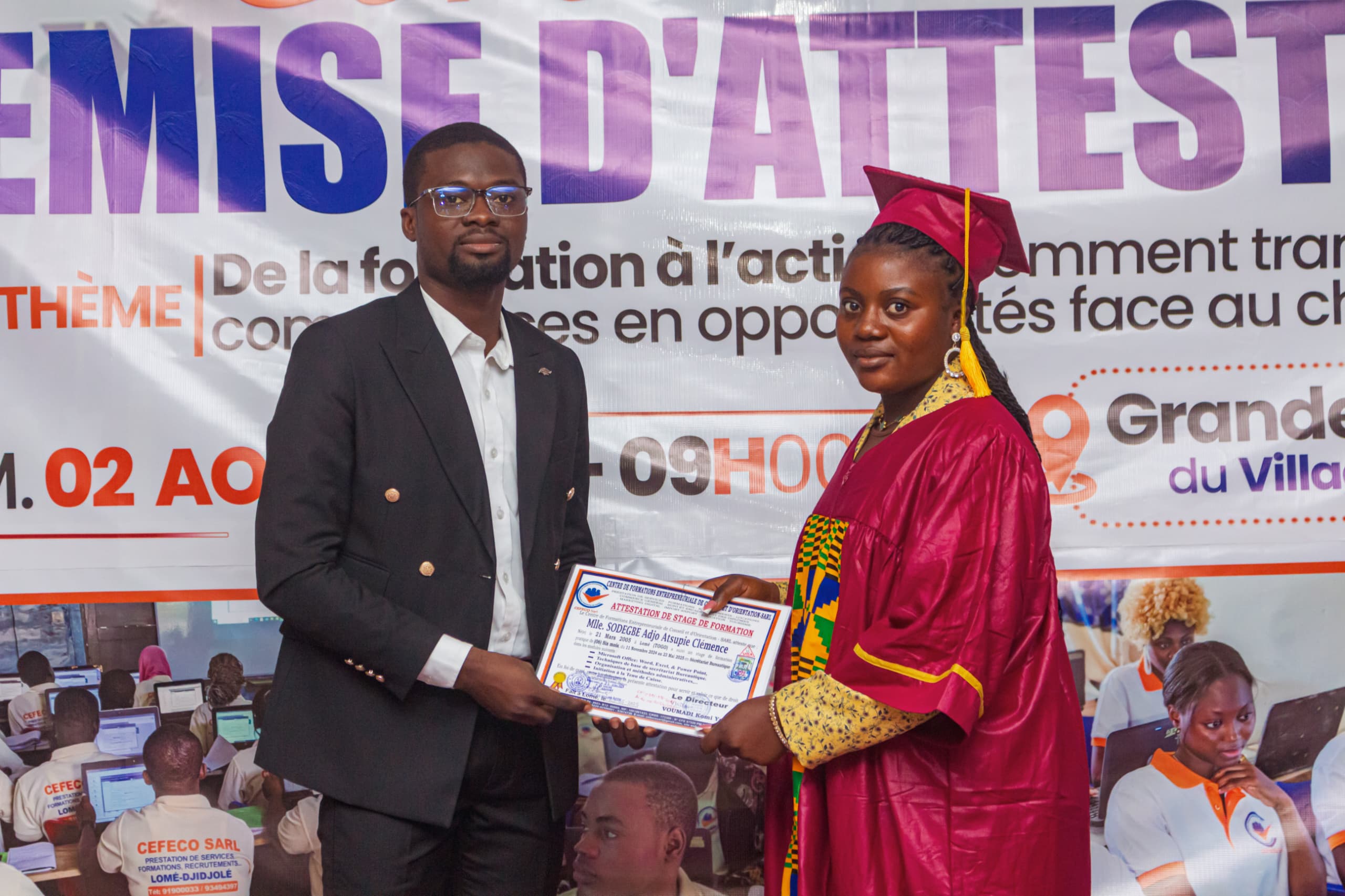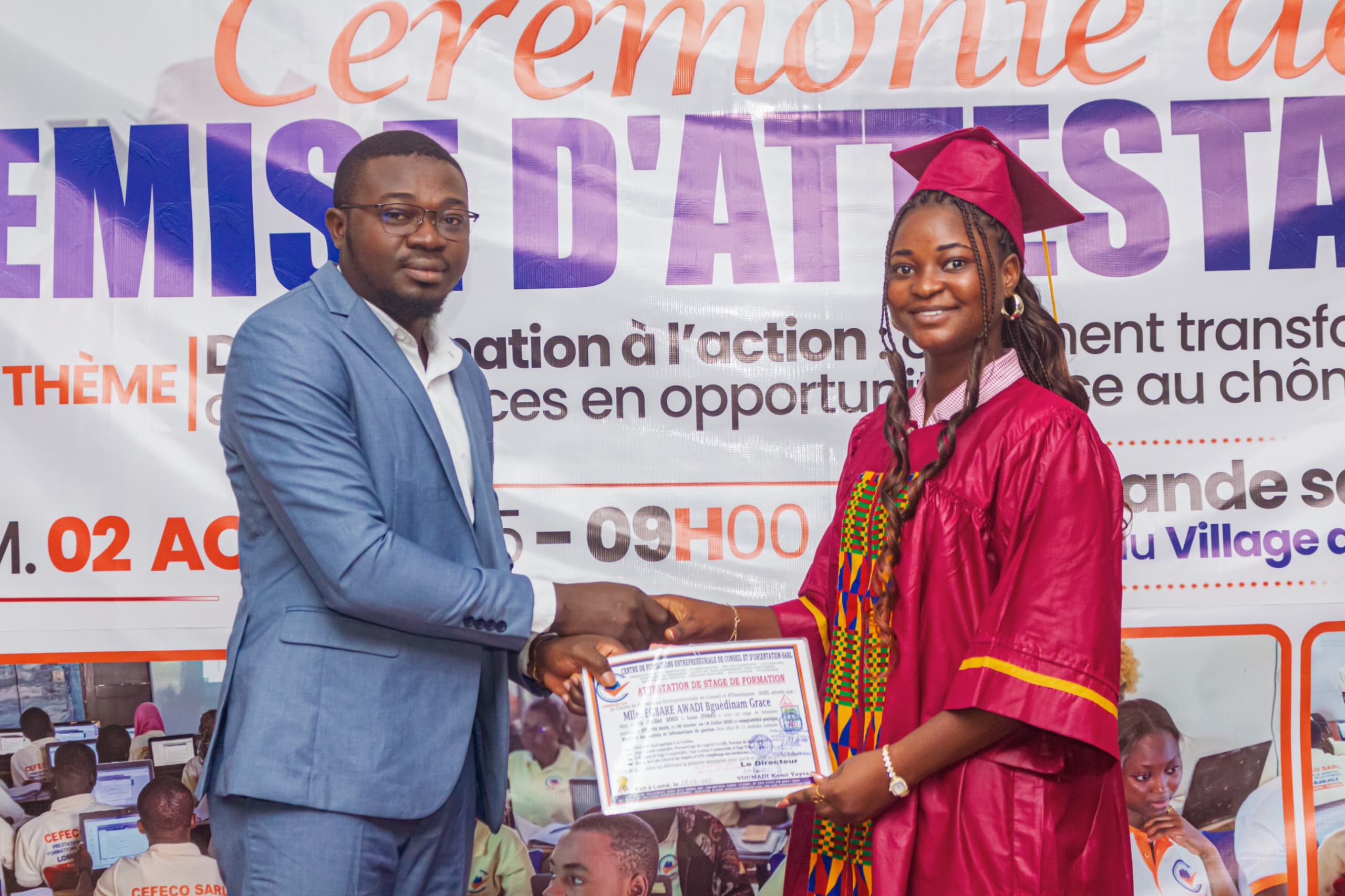 La cérémonie de remise d’attestations du Centre de Formations Entrepreneuriale de Conseil et d’Orientation SARL s’est tenue ce samedi 02 août 2025 dans la grande salle de conférence du Village du Bénin, au Campus Sud. Entre sourires, accolades et discours inspirants, cette journée a marqué l’aboutissement d’un parcours intense pour nos apprenants. Découvrez à travers ces photos l’ambiance festive et l’émotion palpable qui ont rythmé cet événement exceptionnel.