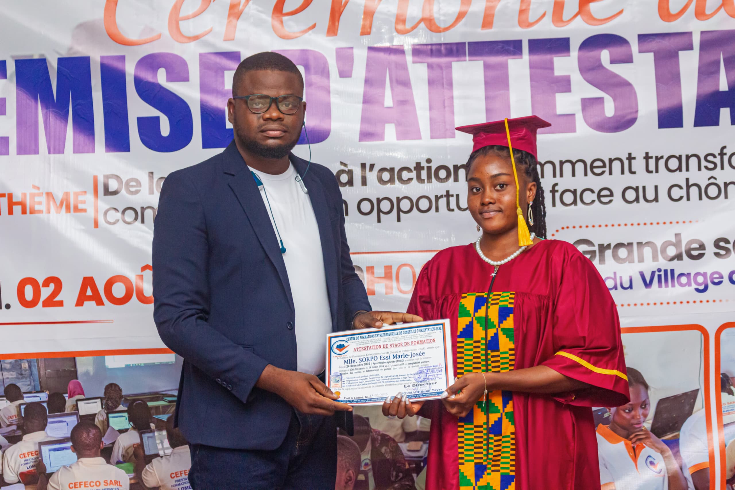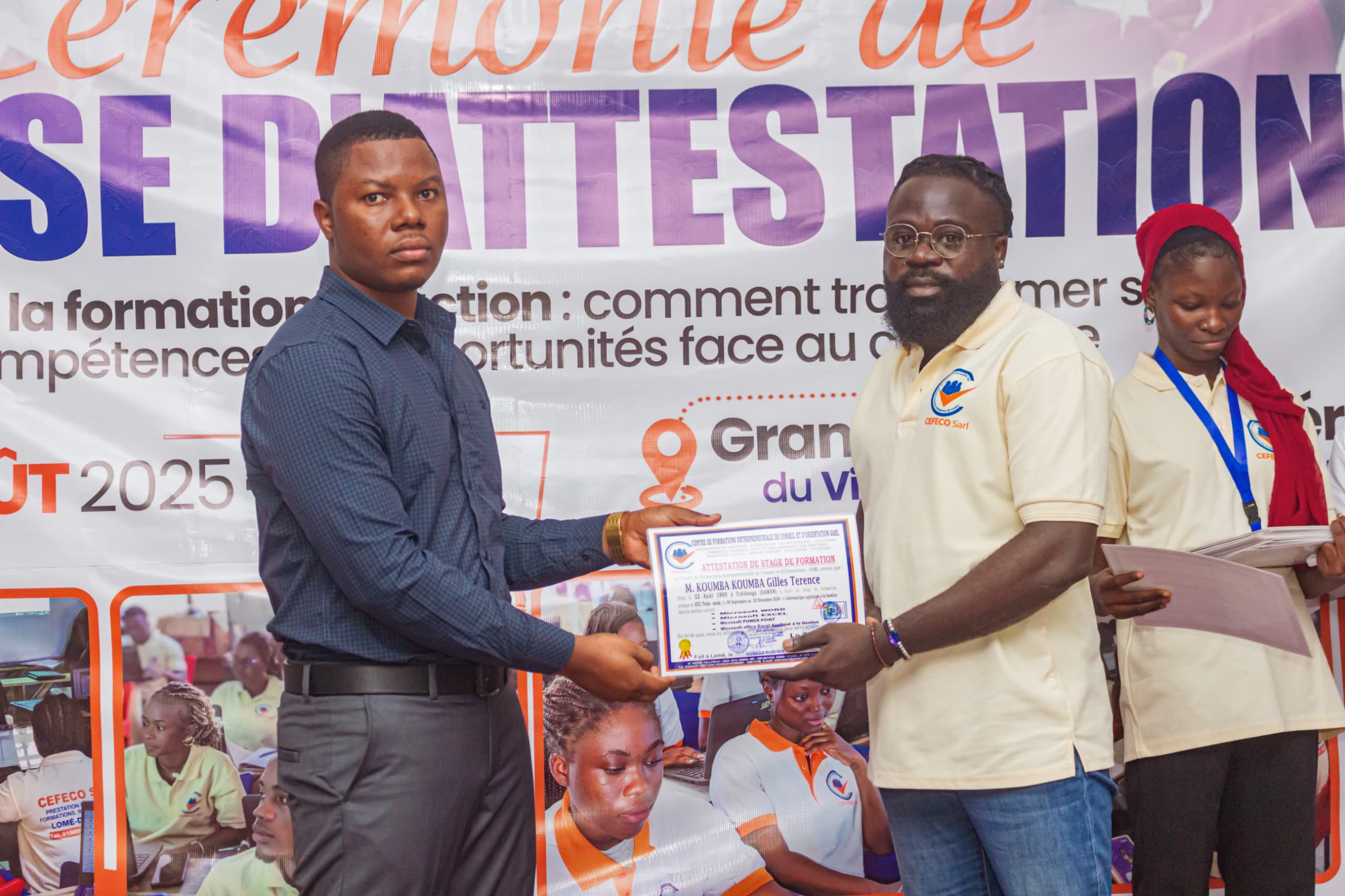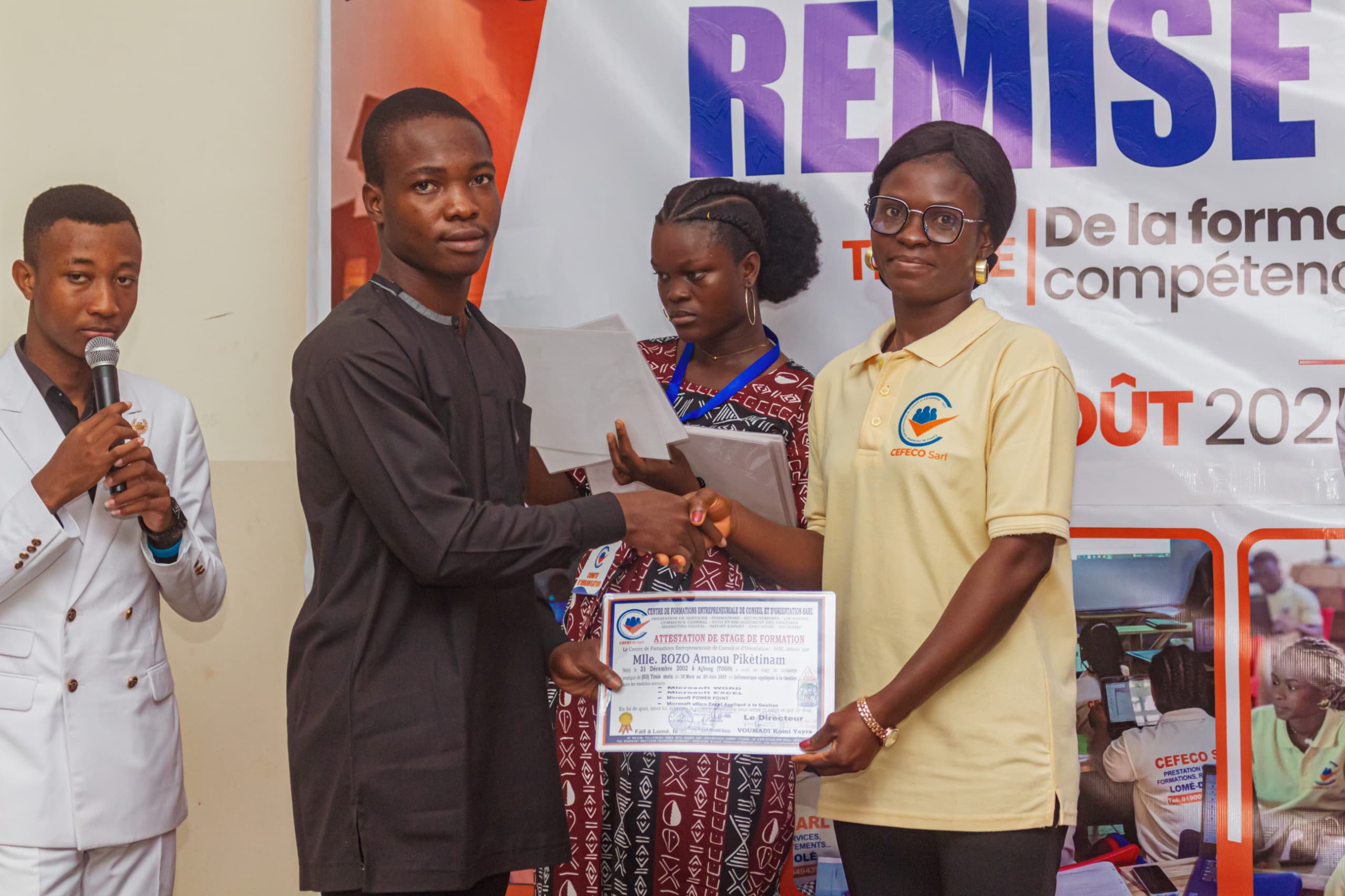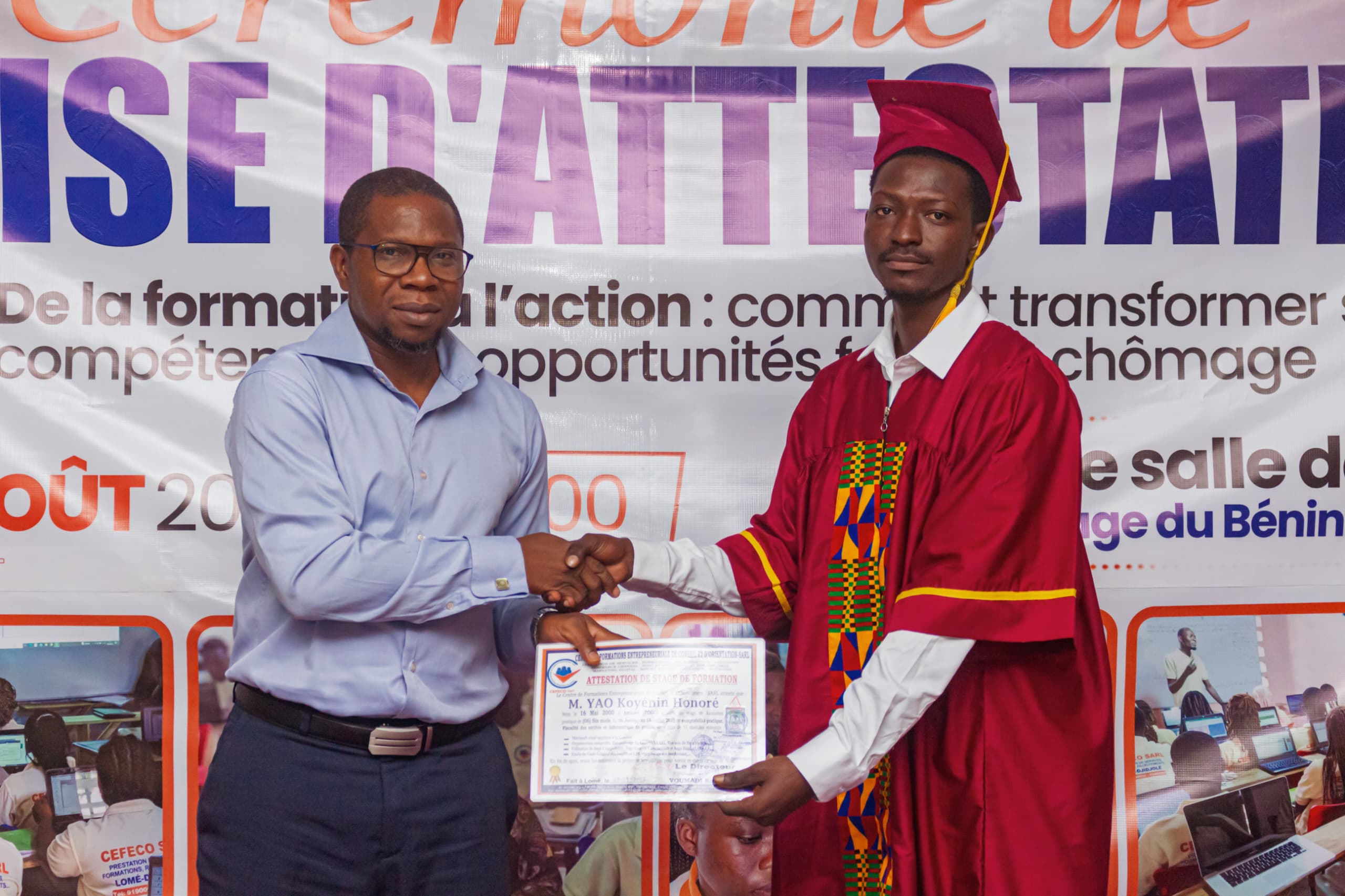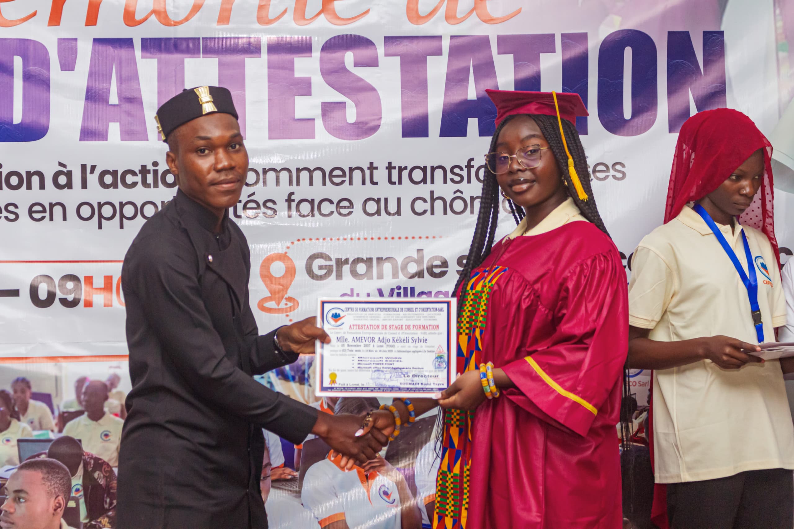 La cérémonie de remise d’attestations du Centre de Formations Entrepreneuriale de Conseil et d’Orientation SARL s’est tenue ce samedi 02 août 2025 dans la grande salle de conférence du Village du Bénin, au Campus Sud. Entre sourires, accolades et discours inspirants, cette journée a marqué l’aboutissement d’un parcours intense pour nos apprenants. Découvrez à travers ces photos l’ambiance festive et l’émotion palpable qui ont rythmé cet événement exceptionnel.