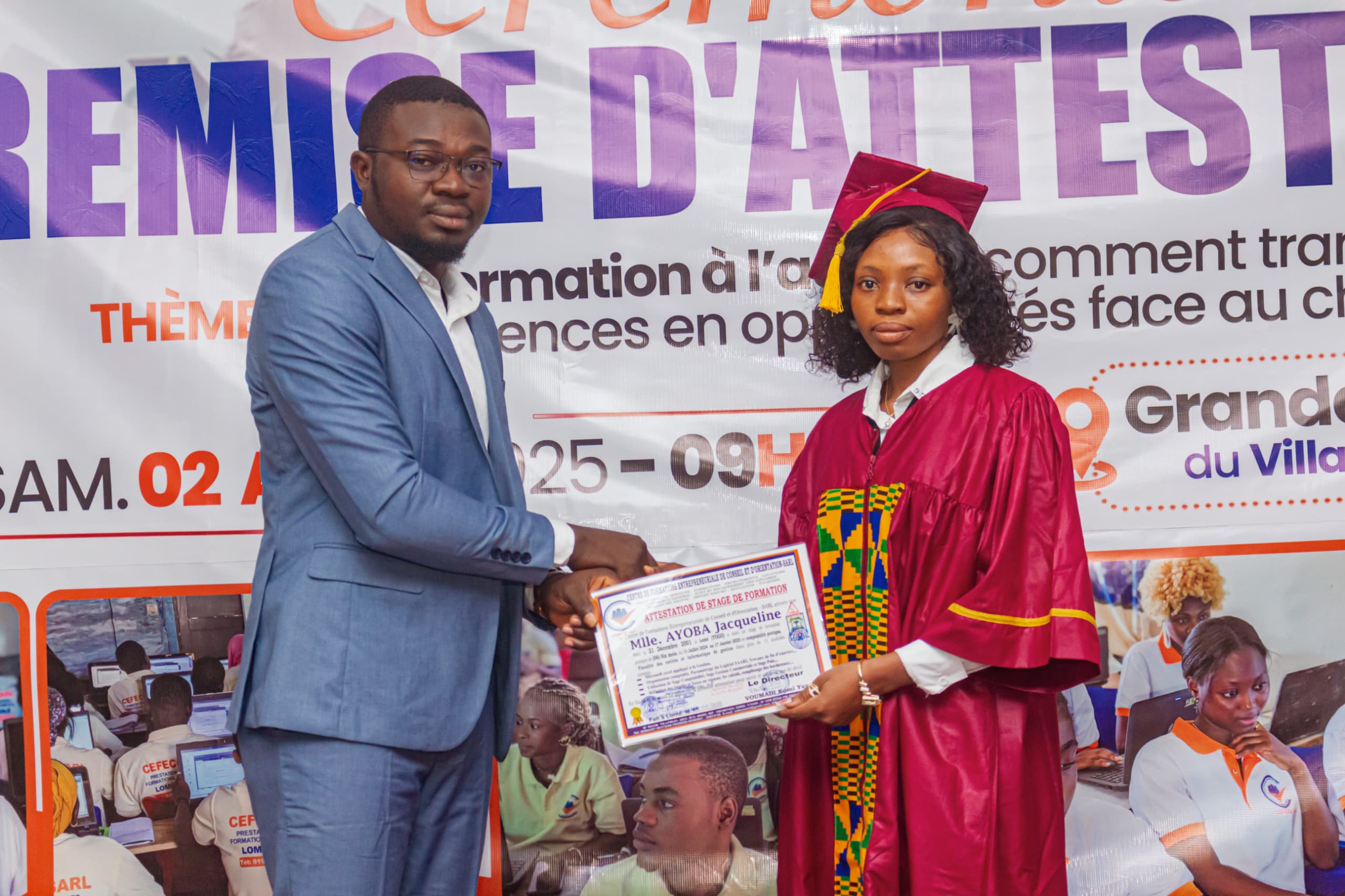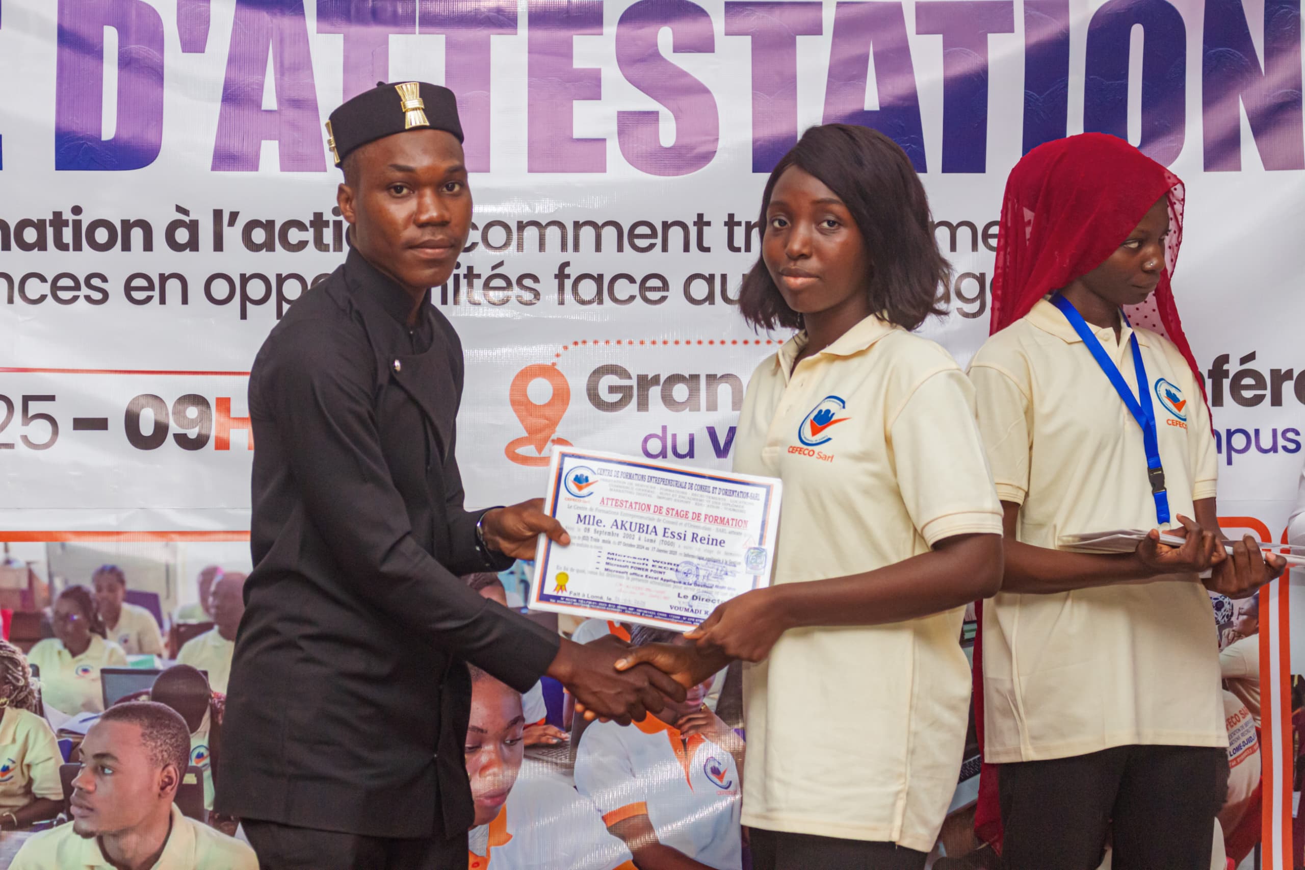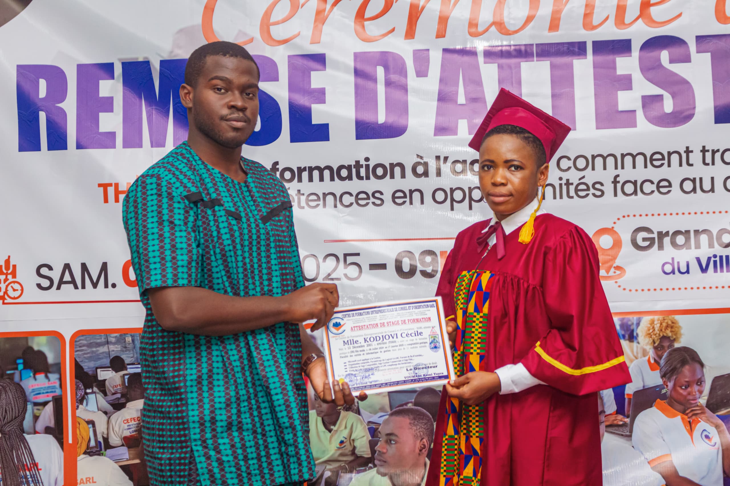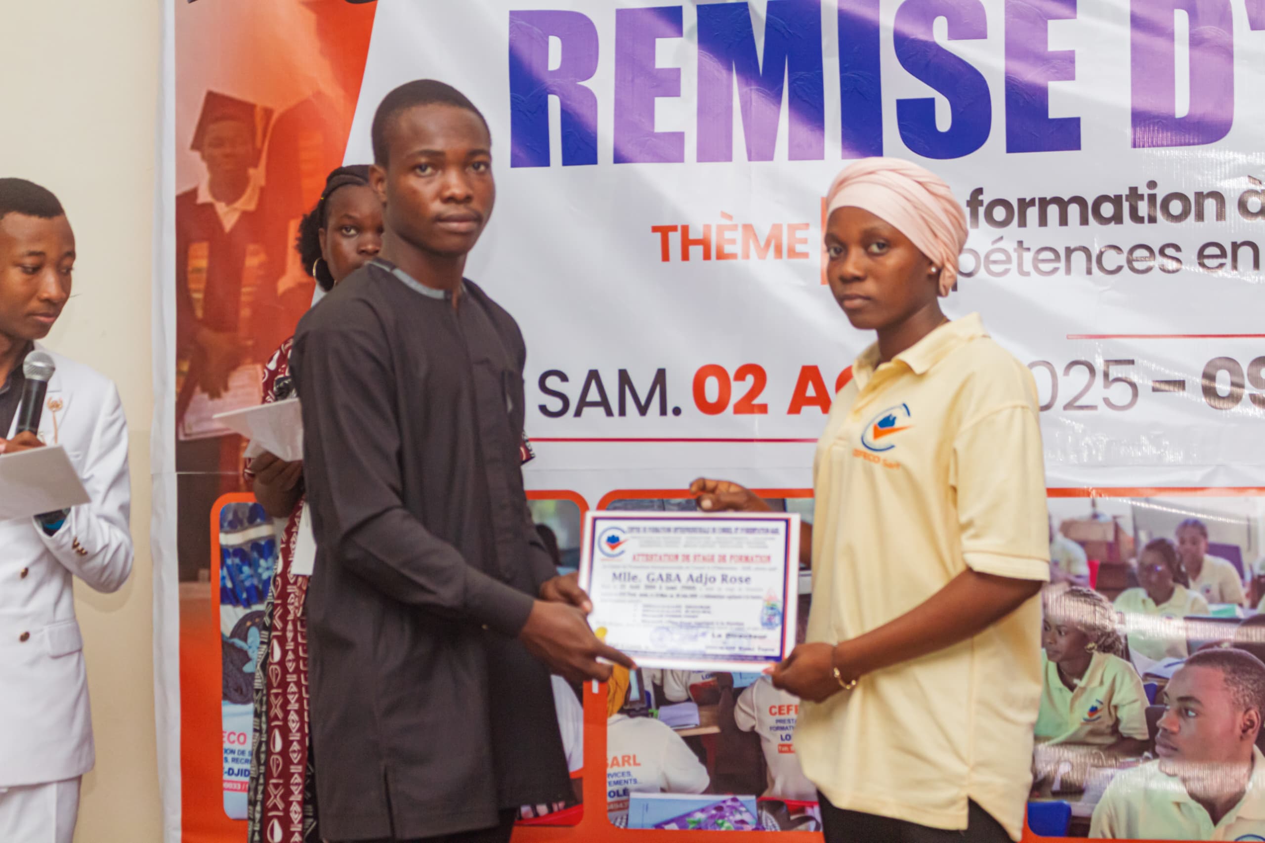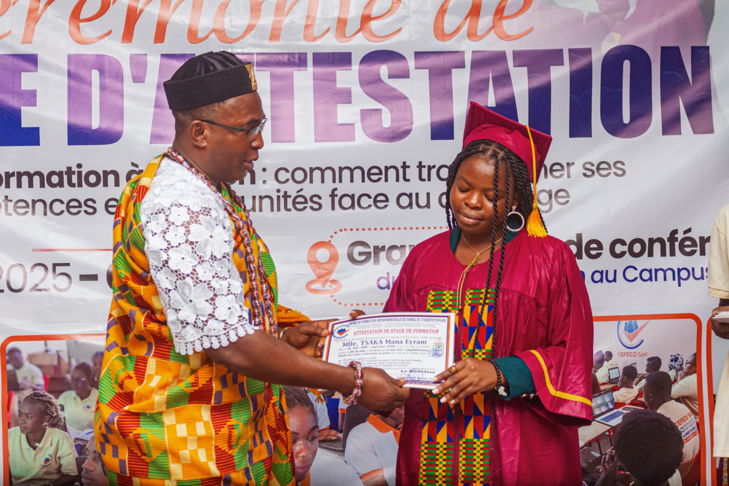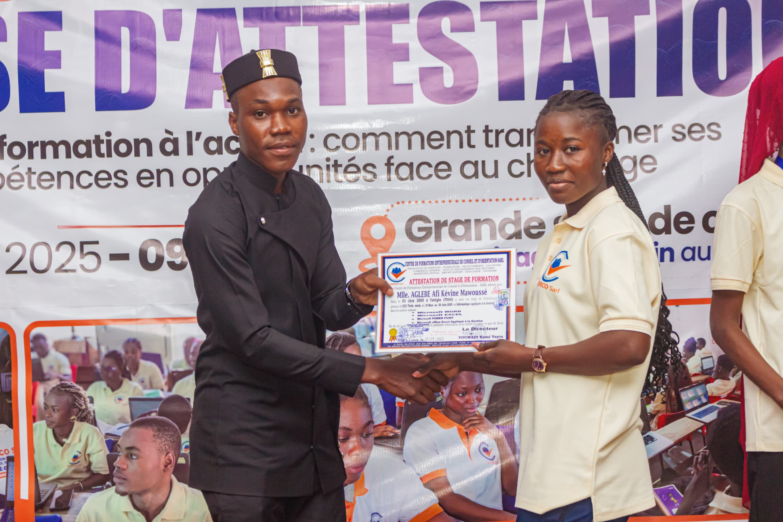 La cérémonie de remise d’attestations du Centre de Formations Entrepreneuriale de Conseil et d’Orientation SARL s’est tenue ce samedi 02 août 2025 dans la grande salle de conférence du Village du Bénin, au Campus Sud. Entre sourires, accolades et discours inspirants, cette journée a marqué l’aboutissement d’un parcours intense pour nos apprenants. Découvrez à travers ces photos l’ambiance festive et l’émotion palpable qui ont rythmé cet événement exceptionnel.