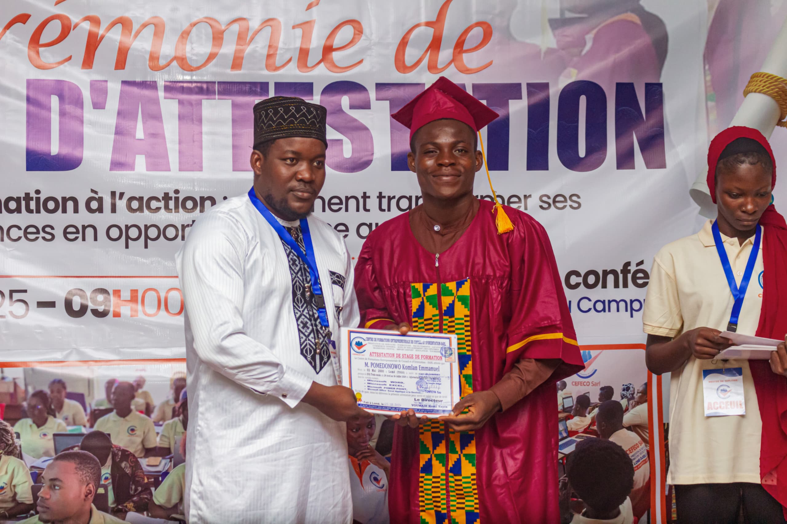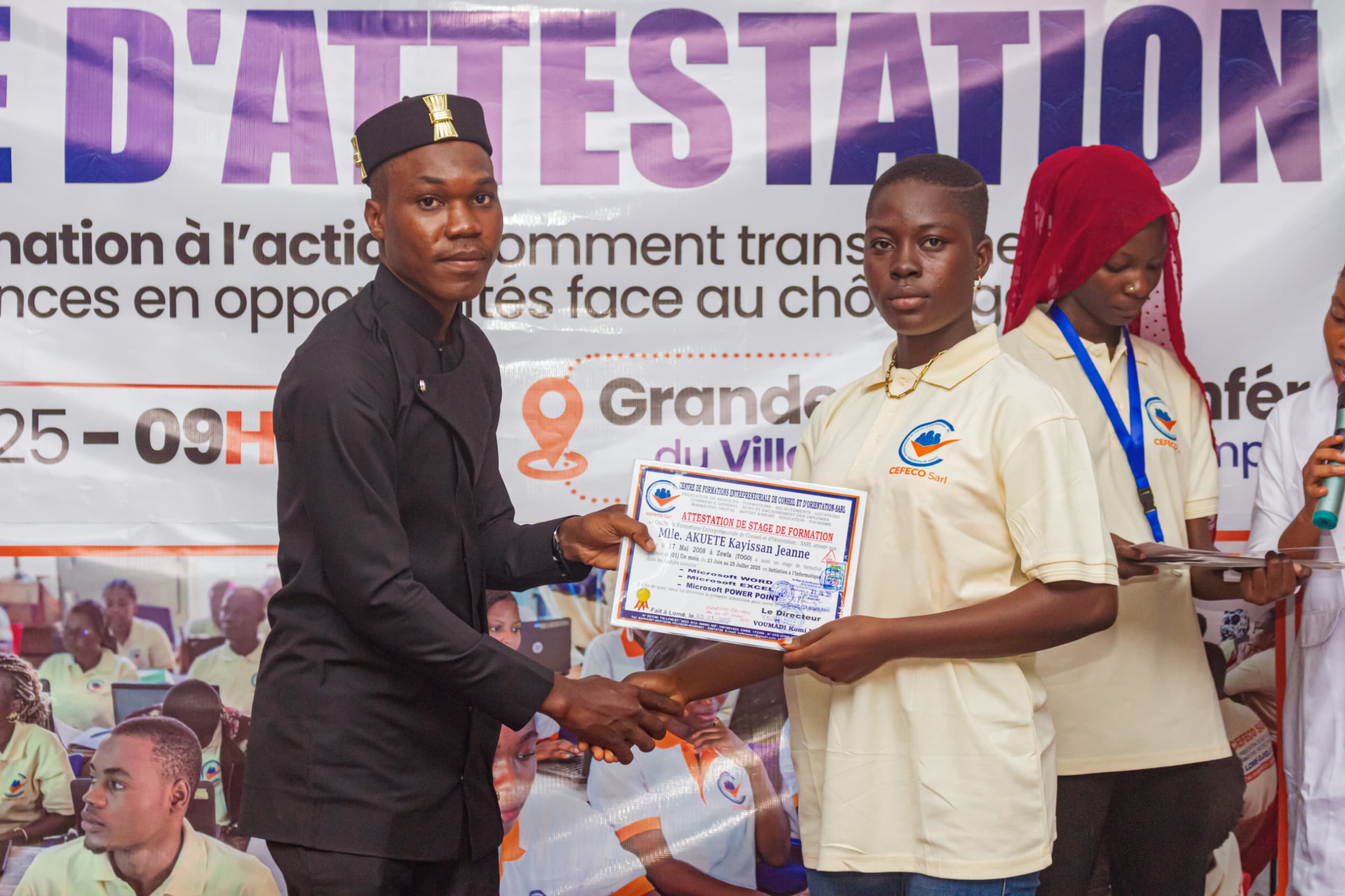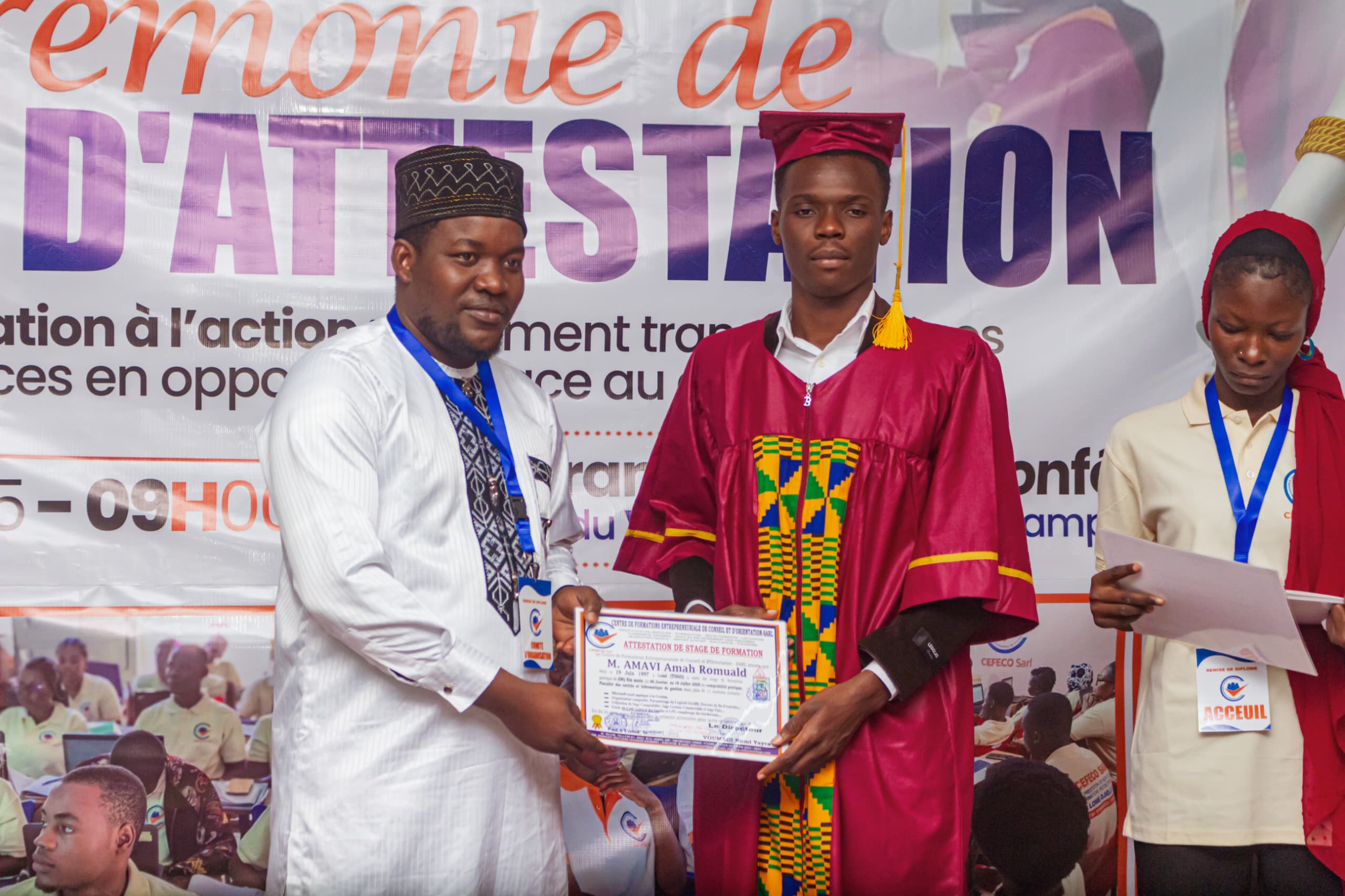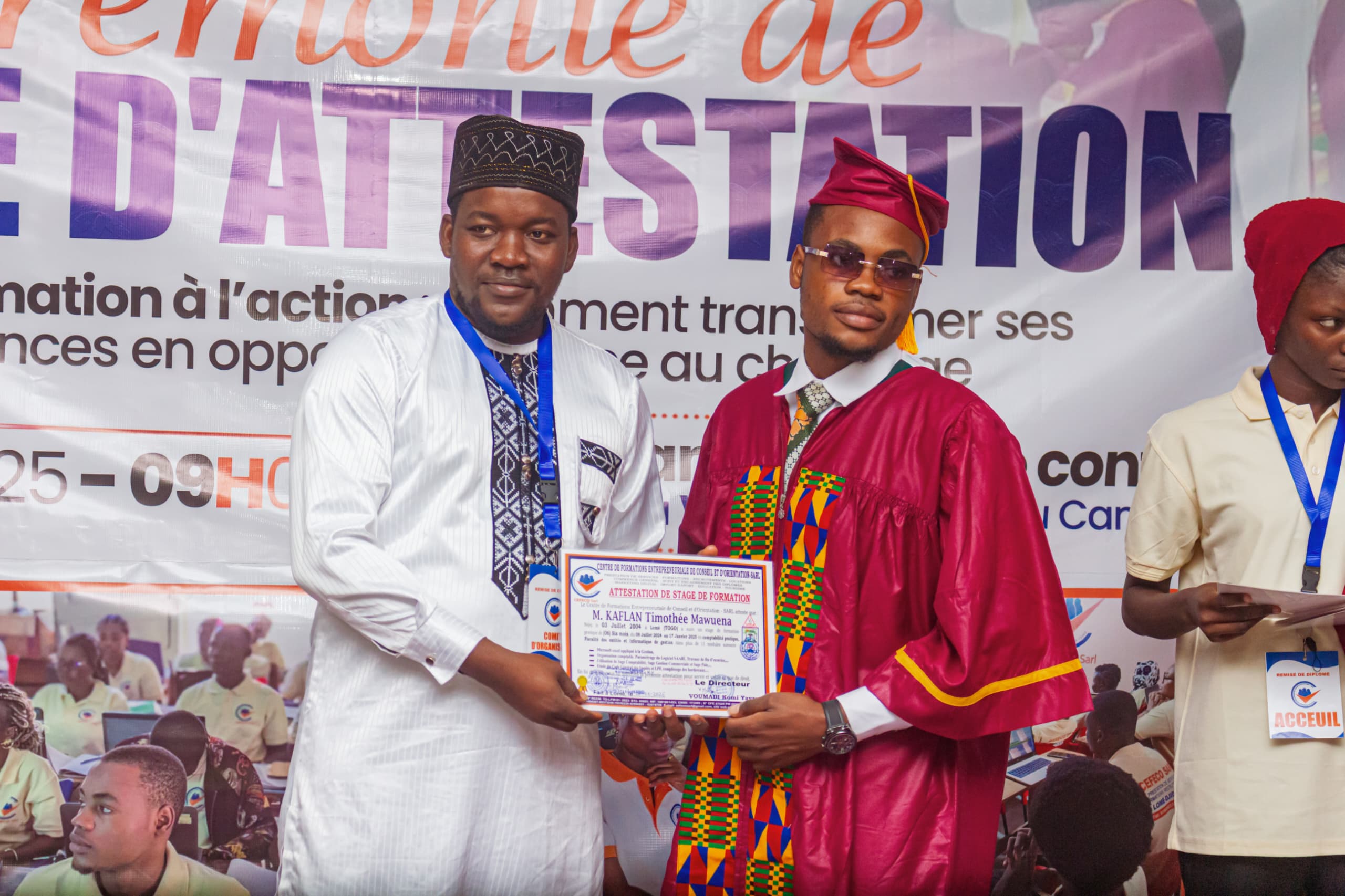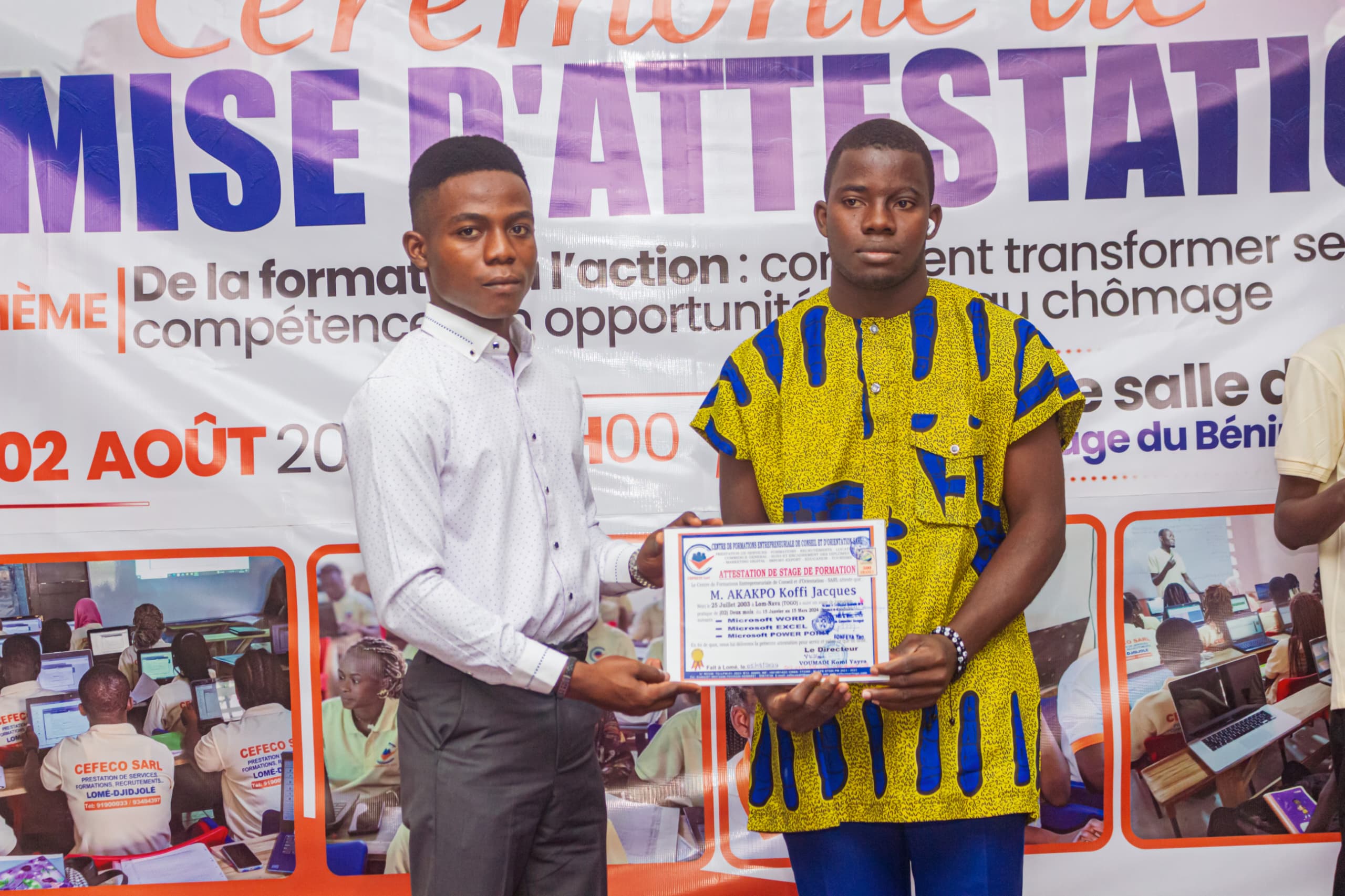 La cérémonie de remise d’attestations du Centre de Formations Entrepreneuriale de Conseil et d’Orientation SARL s’est tenue ce samedi 02 août 2025 dans la grande salle de conférence du Village du Bénin, au Campus Sud. Entre sourires, accolades et discours inspirants, cette journée a marqué l’aboutissement d’un parcours intense pour nos apprenants. Découvrez à travers ces photos l’ambiance festive et l’émotion palpable qui ont rythmé cet événement exceptionnel.