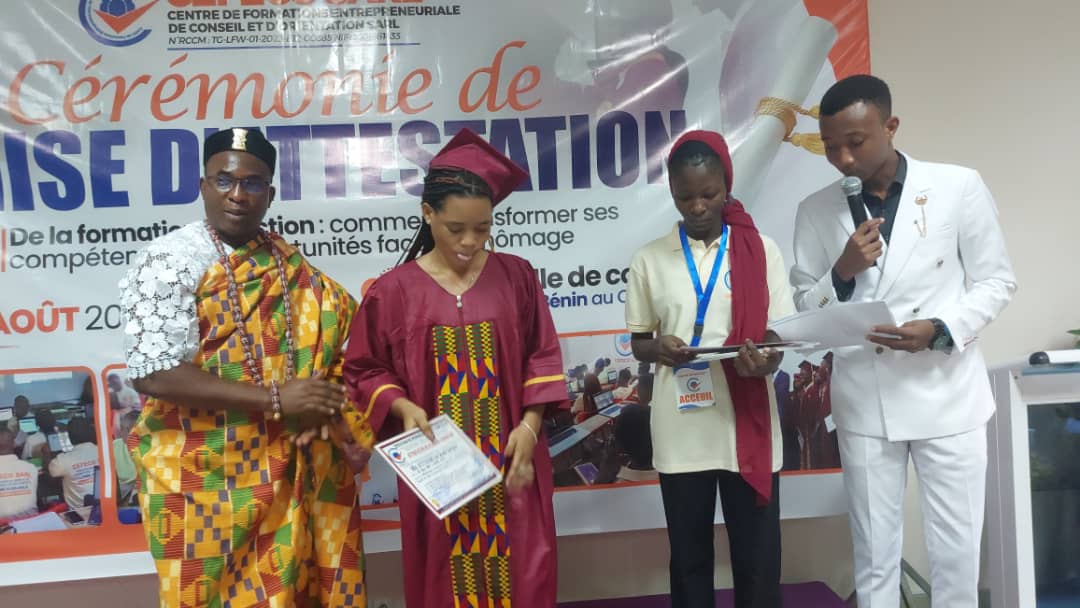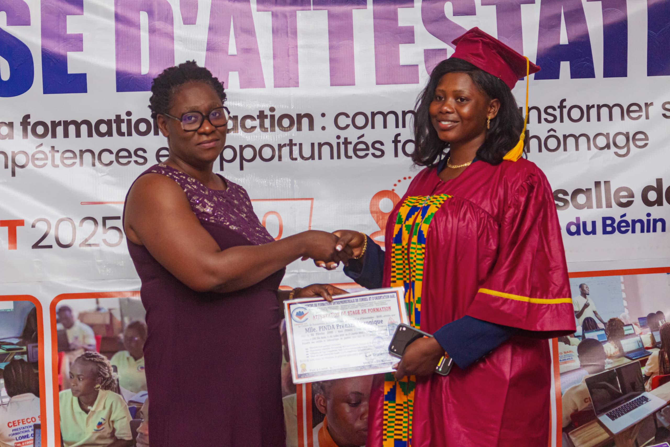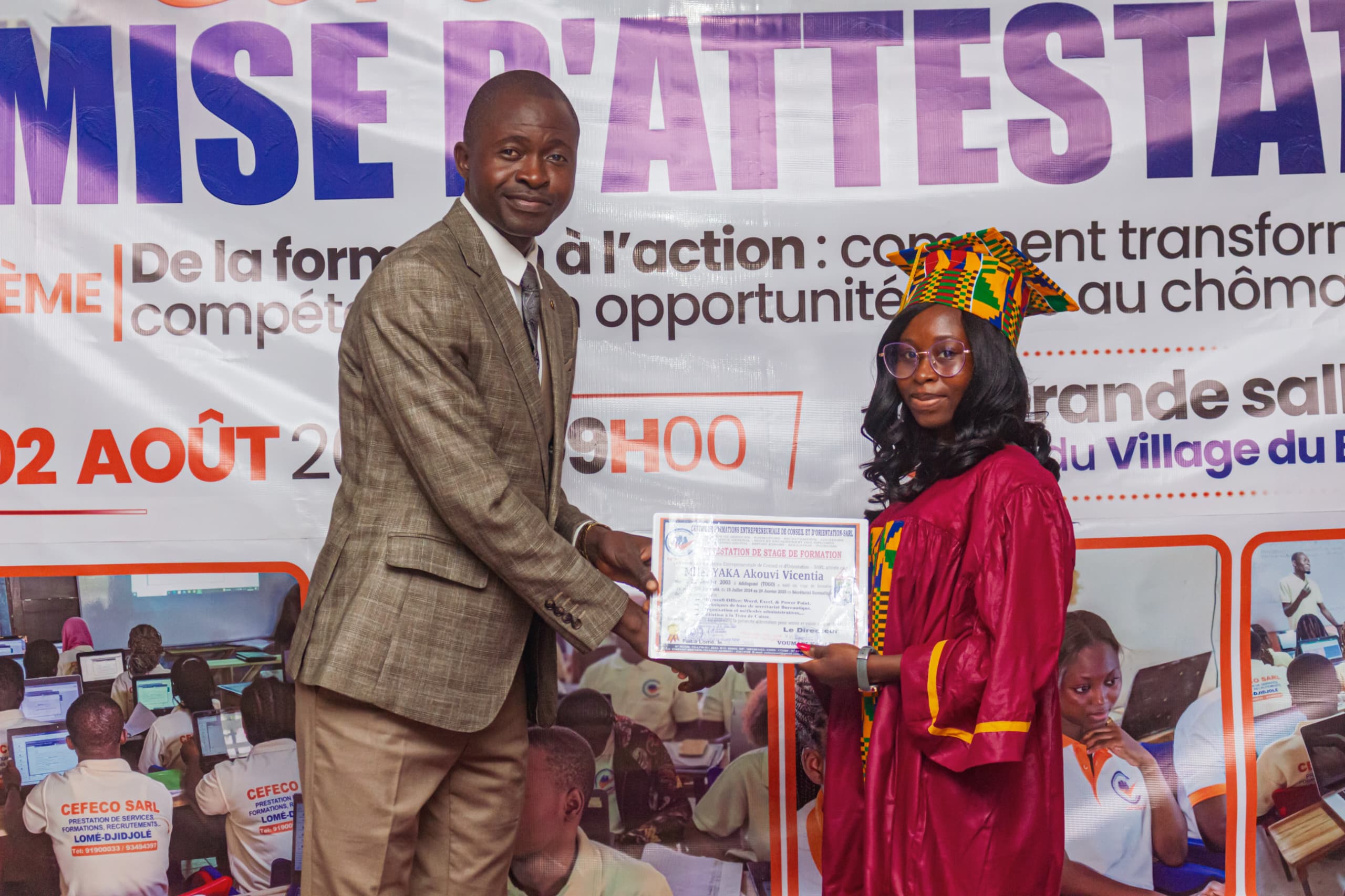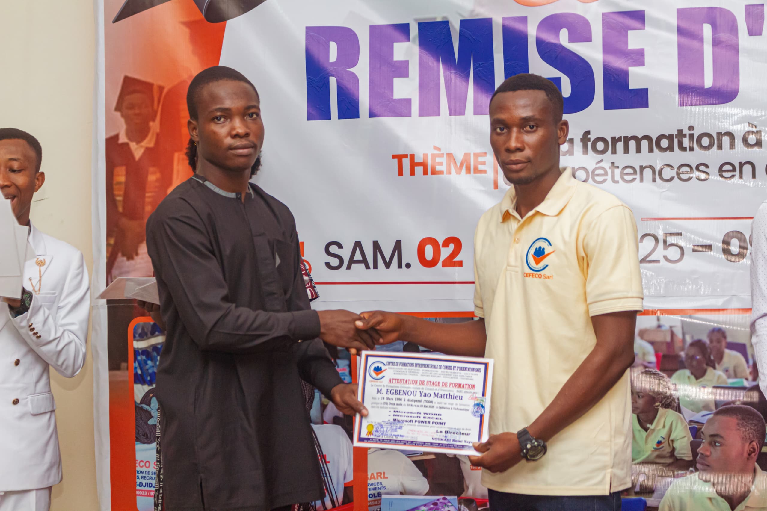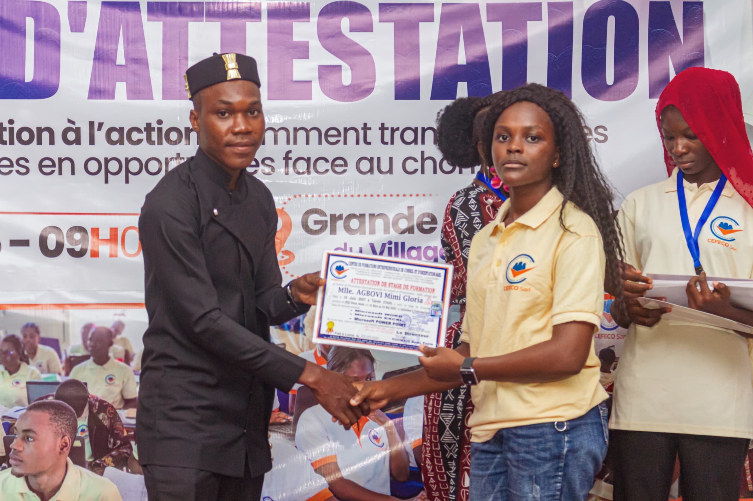 La cérémonie de remise d’attestations du Centre de Formations Entrepreneuriale de Conseil et d’Orientation SARL s’est tenue ce samedi 02 août 2025 dans la grande salle de conférence du Village du Bénin, au Campus Sud. Entre sourires, accolades et discours inspirants, cette journée a marqué l’aboutissement d’un parcours intense pour nos apprenants. Découvrez à travers ces photos l’ambiance festive et l’émotion palpable qui ont rythmé cet événement exceptionnel.