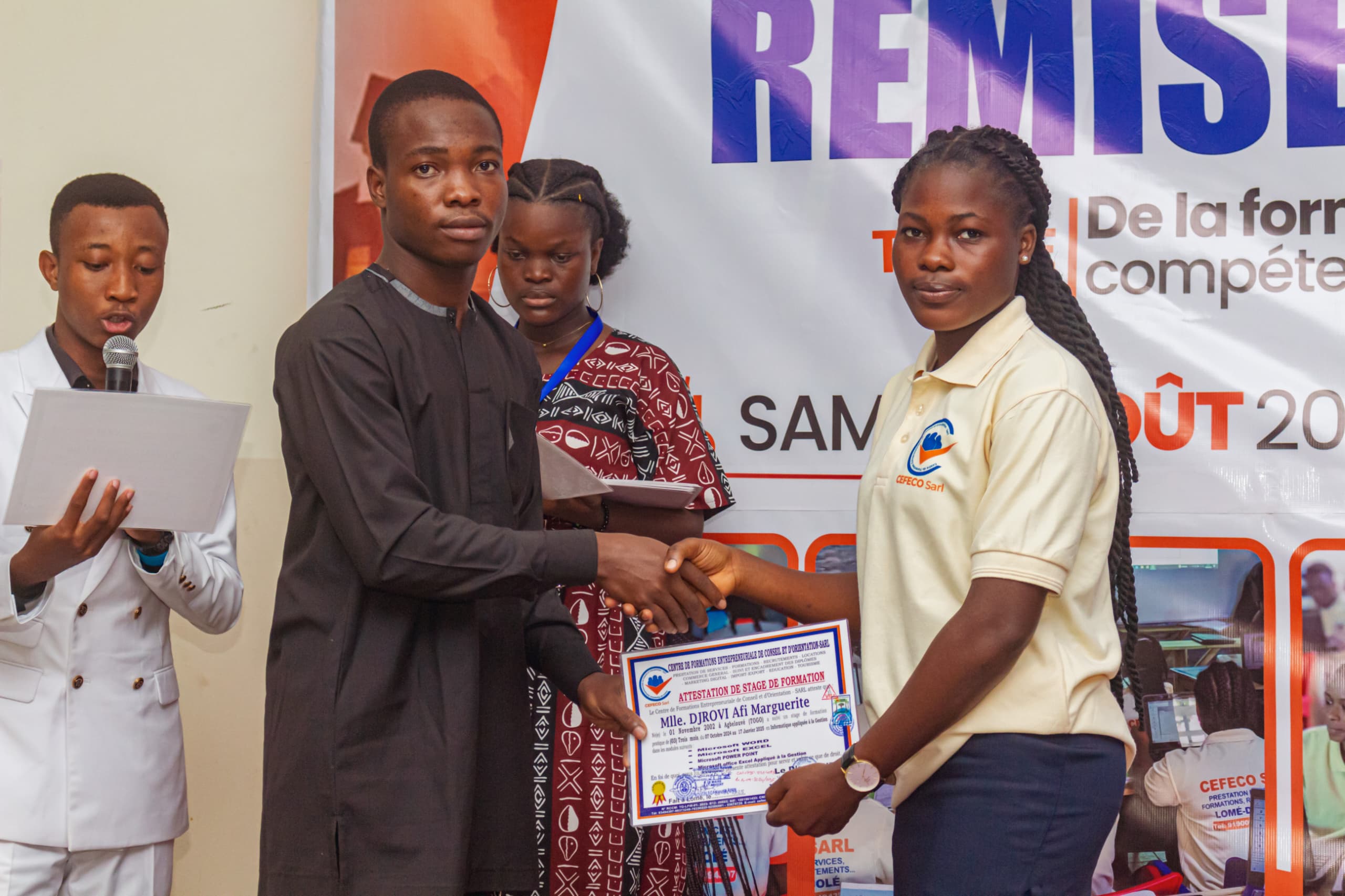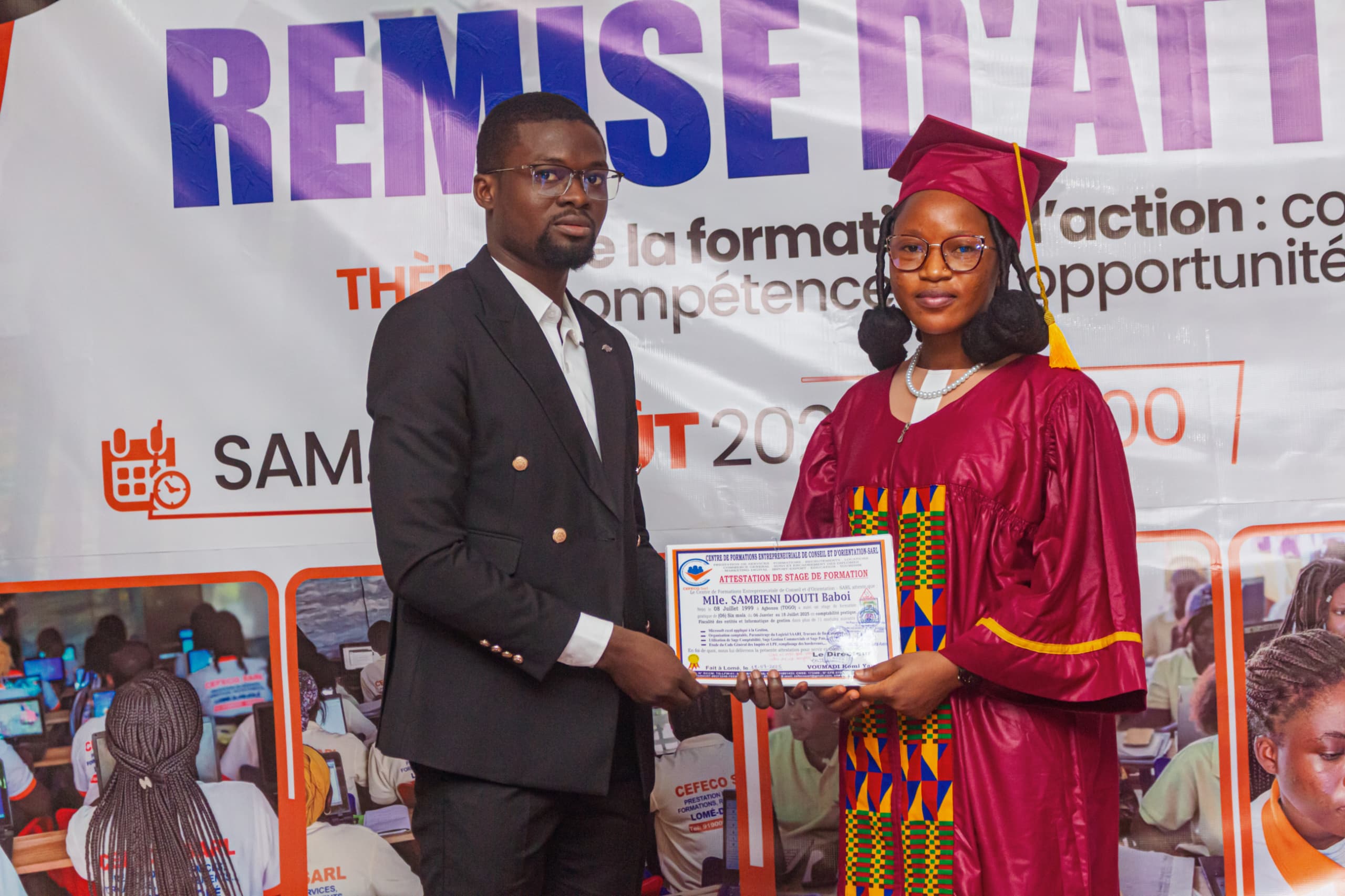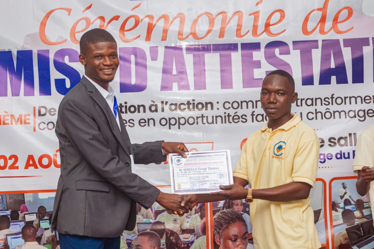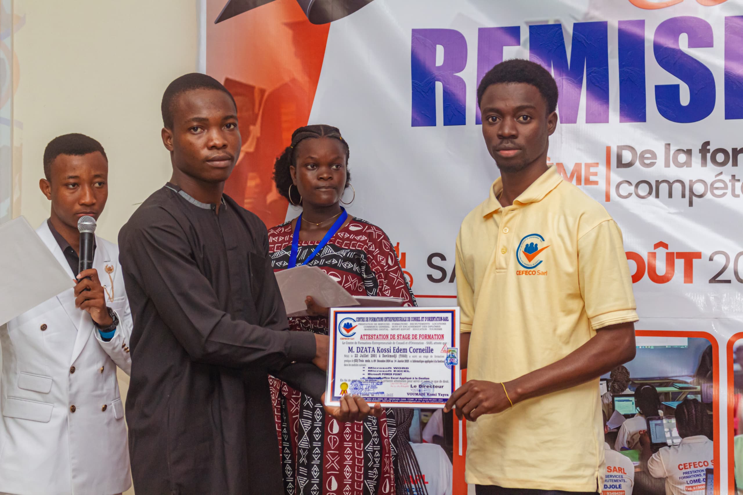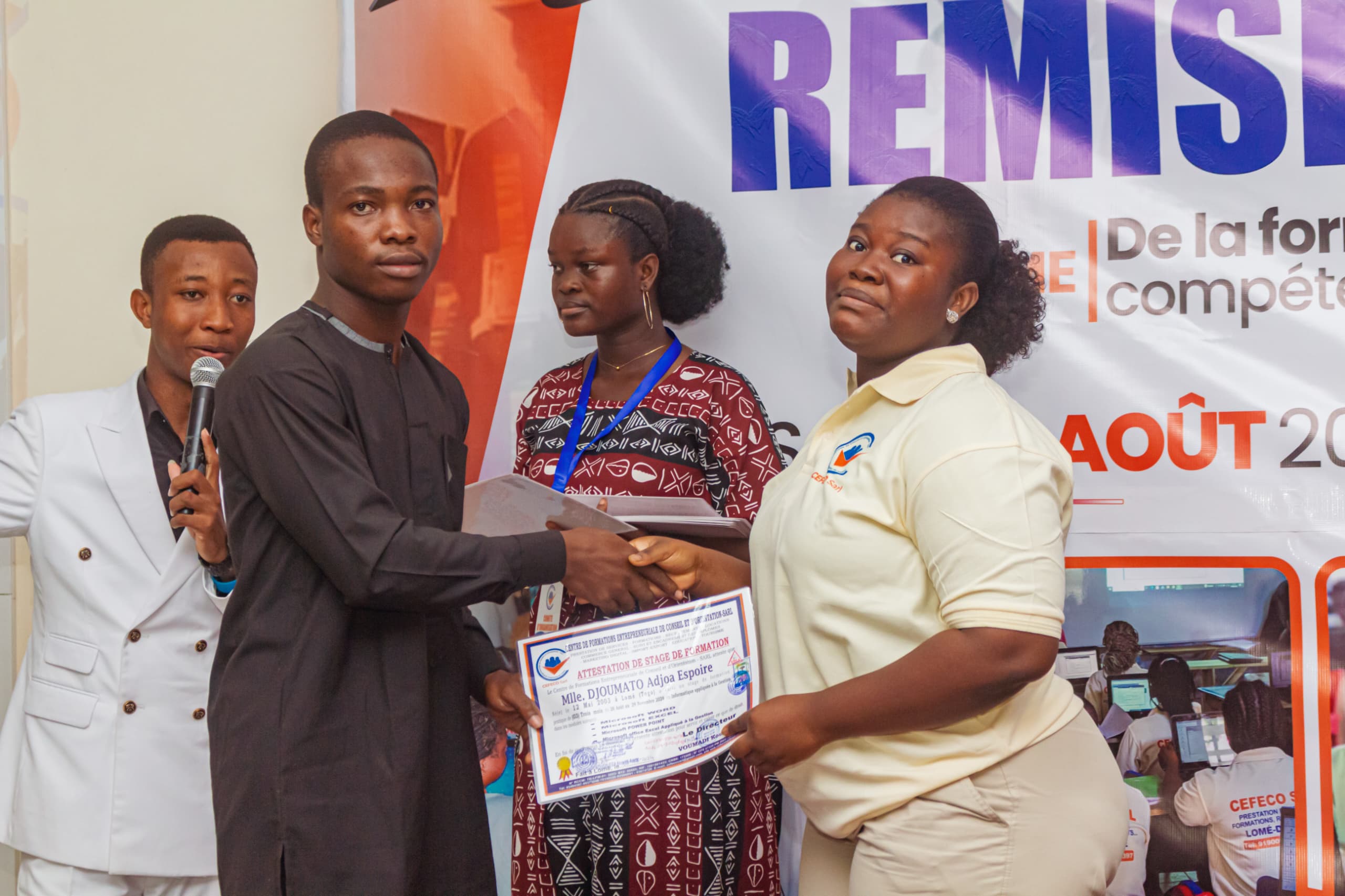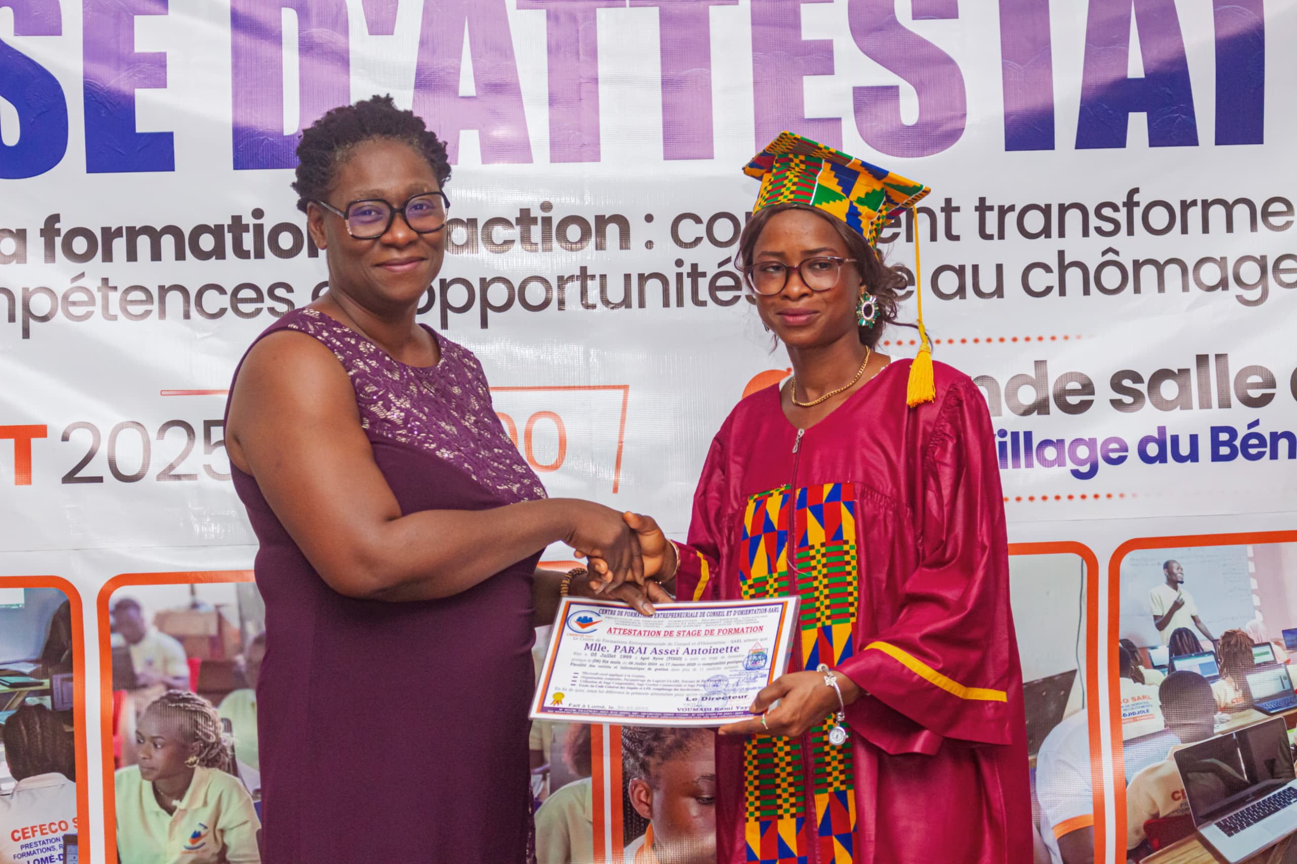 La cérémonie de remise d’attestations du Centre de Formations Entrepreneuriale de Conseil et d’Orientation SARL s’est tenue ce samedi 02 août 2025 dans la grande salle de conférence du Village du Bénin, au Campus Sud. Entre sourires, accolades et discours inspirants, cette journée a marqué l’aboutissement d’un parcours intense pour nos apprenants. Découvrez à travers ces photos l’ambiance festive et l’émotion palpable qui ont rythmé cet événement exceptionnel.