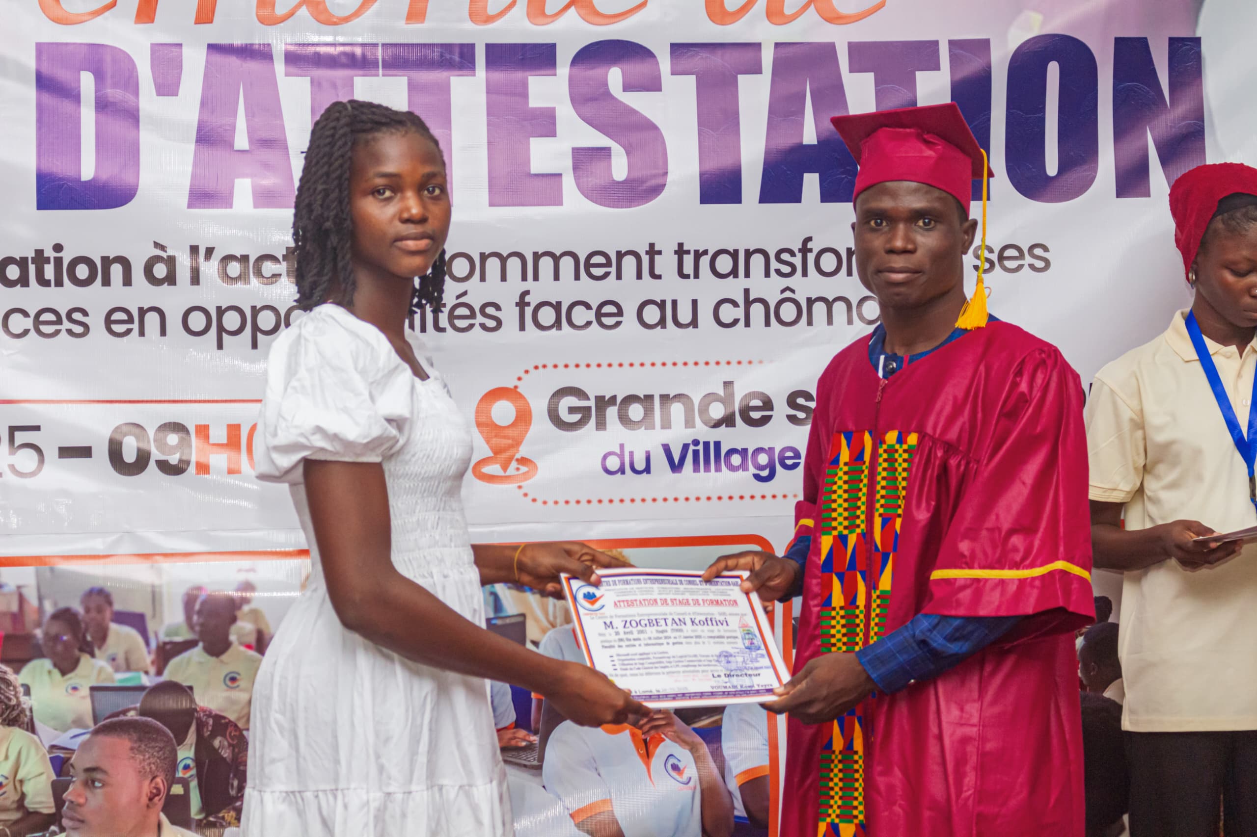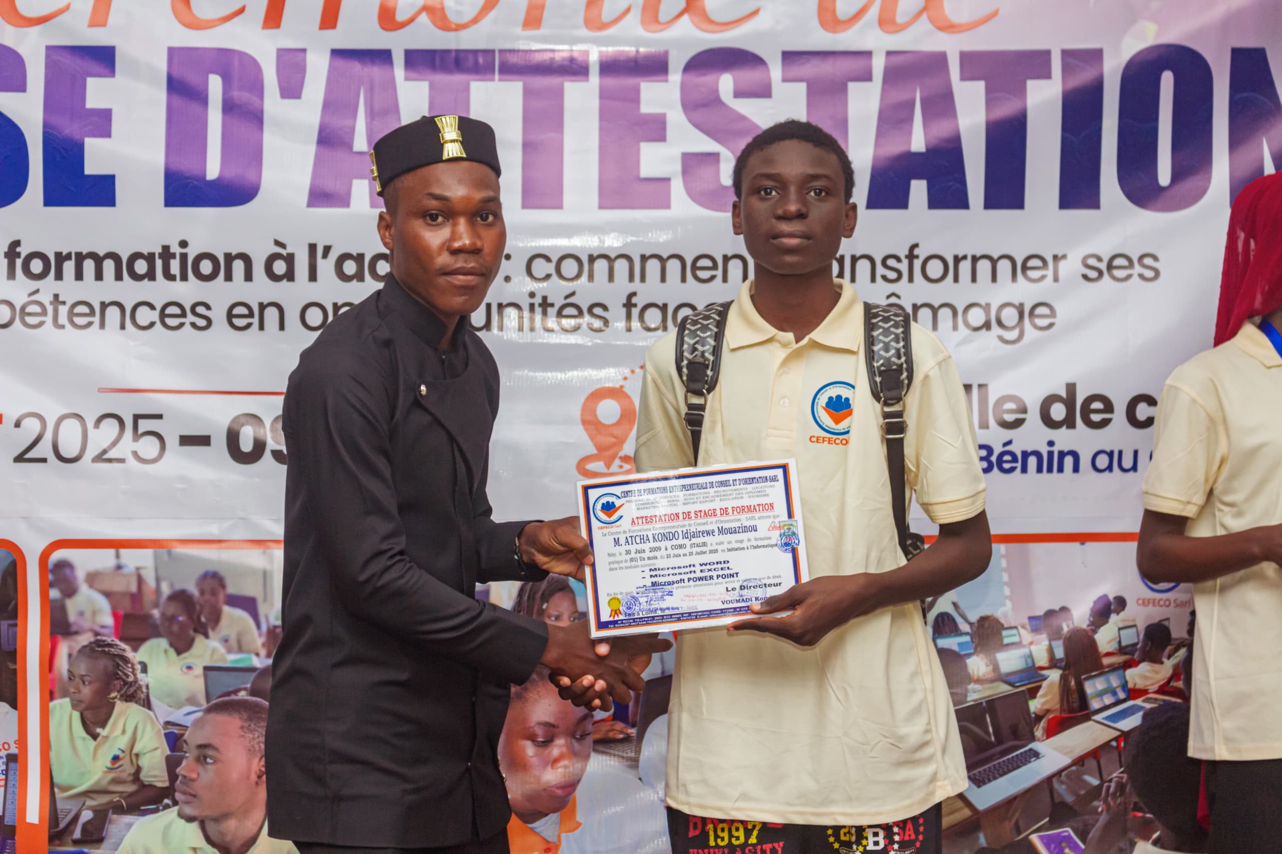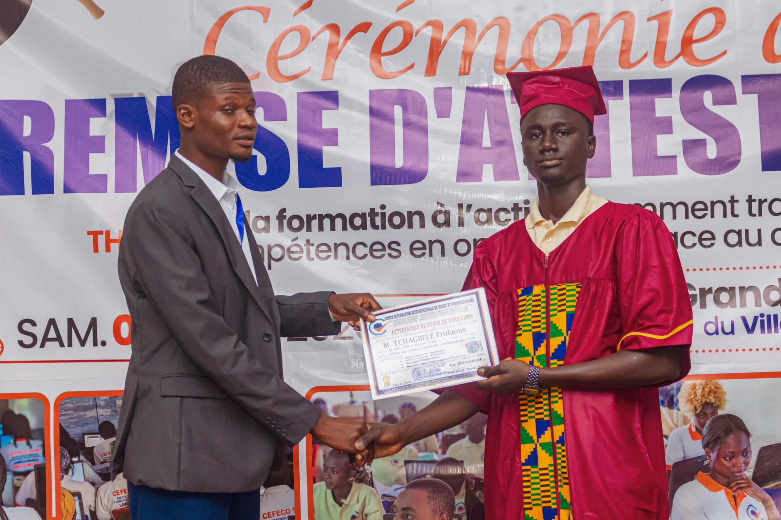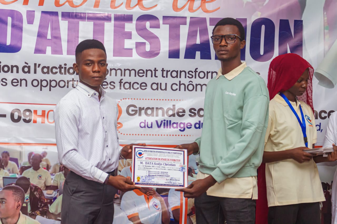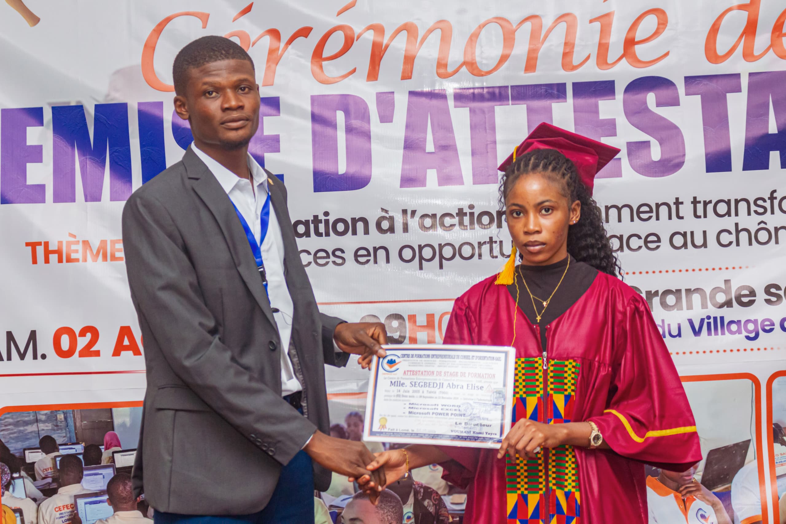 La cérémonie de remise d’attestations du Centre de Formations Entrepreneuriale de Conseil et d’Orientation SARL s’est tenue ce samedi 02 août 2025 dans la grande salle de conférence du Village du Bénin, au Campus Sud. Entre sourires, accolades et discours inspirants, cette journée a marqué l’aboutissement d’un parcours intense pour nos apprenants. Découvrez à travers ces photos l’ambiance festive et l’émotion palpable qui ont rythmé cet événement exceptionnel.