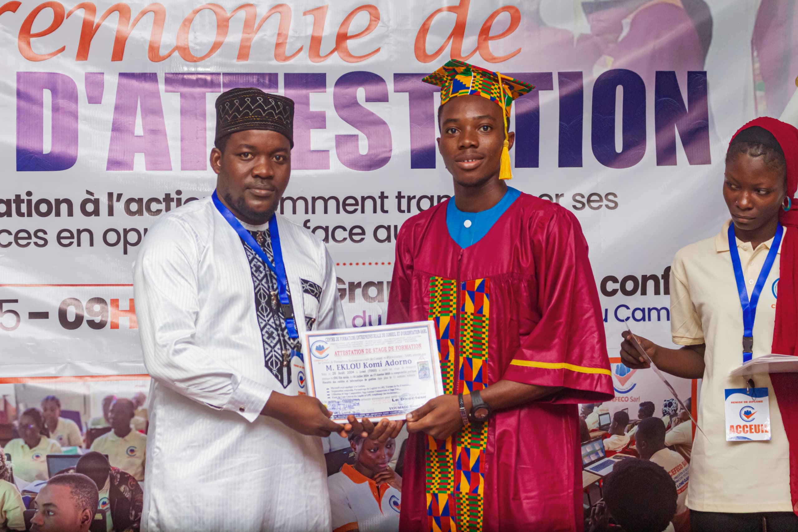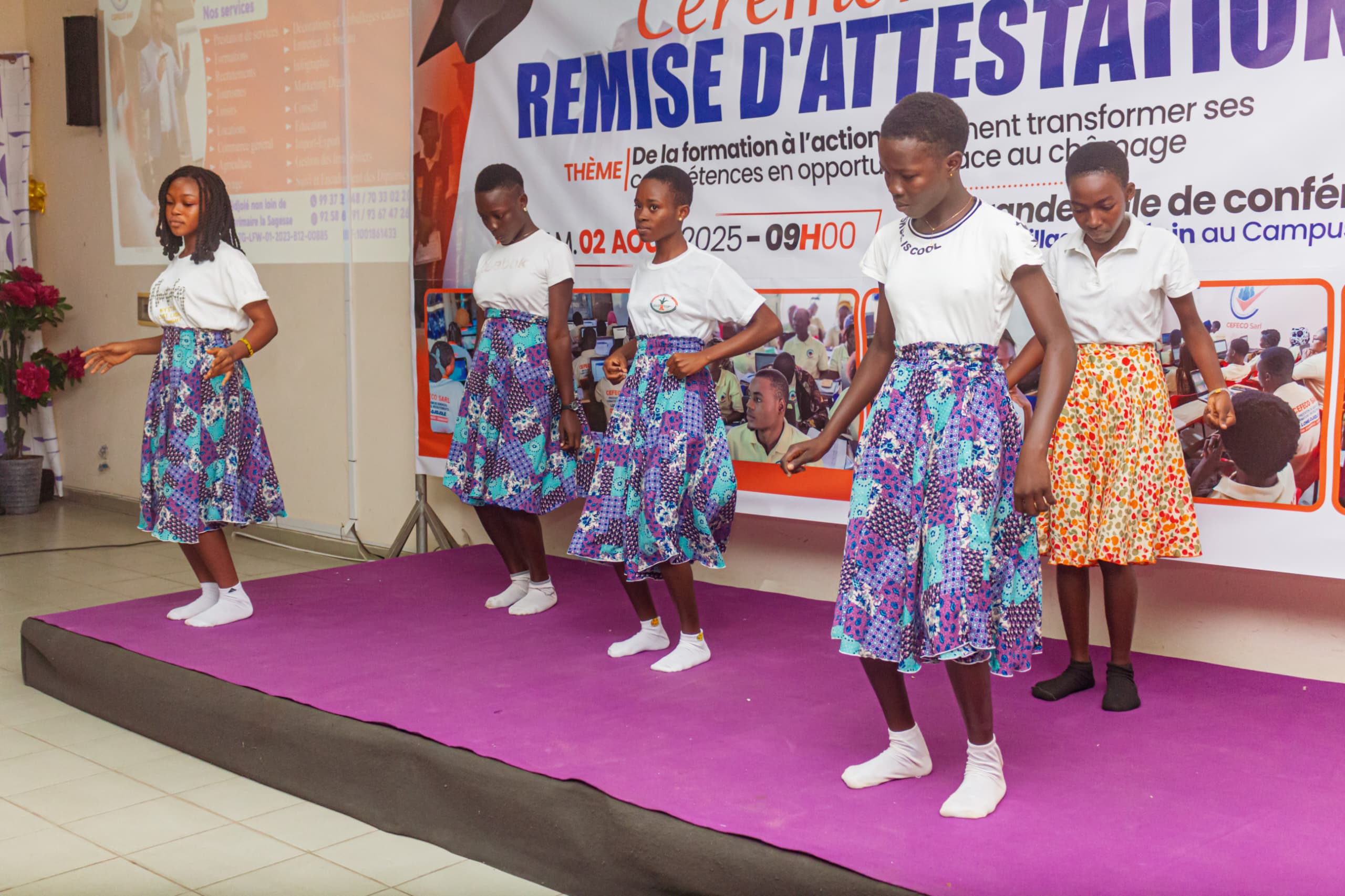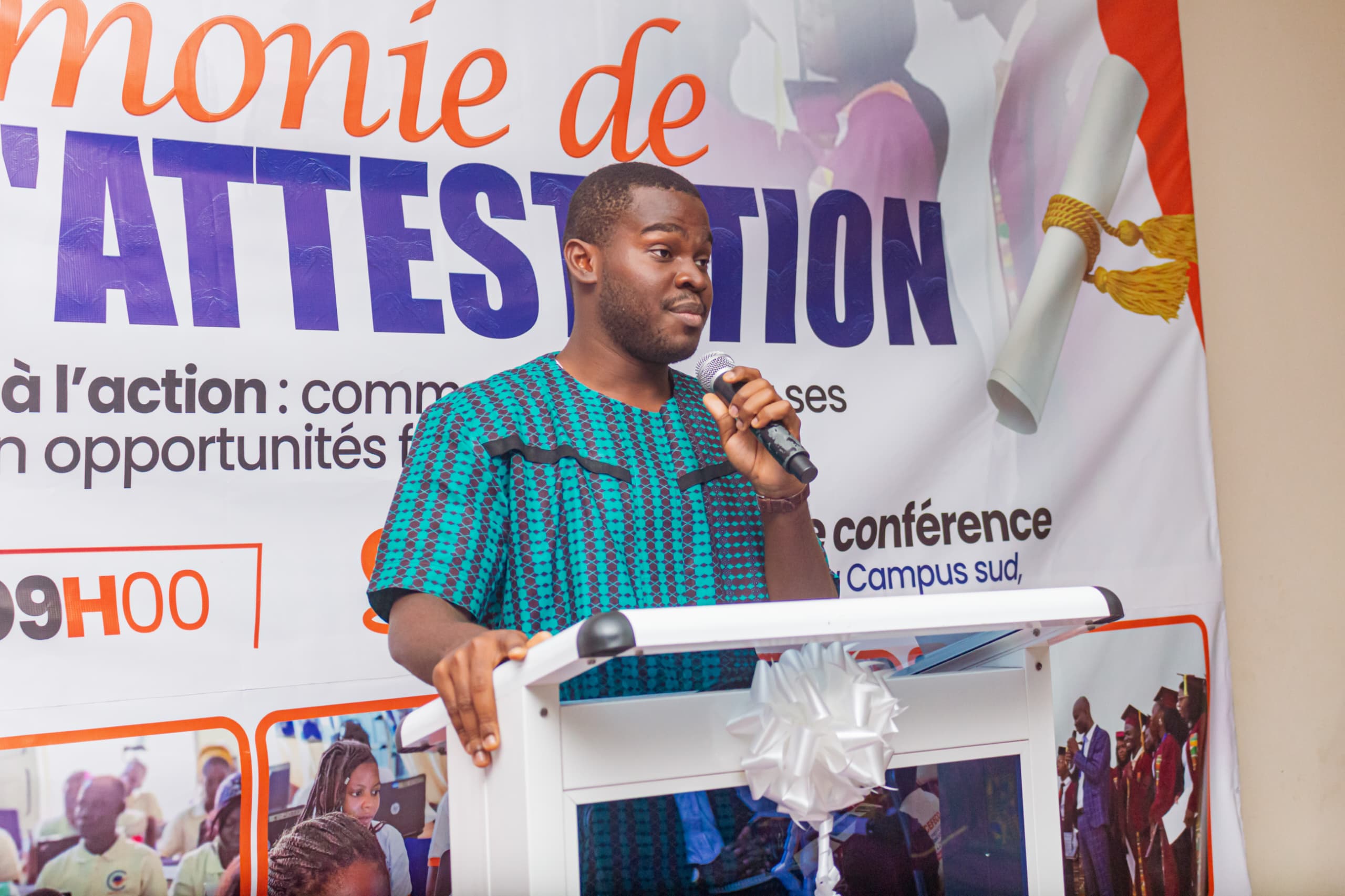 Nos diplômés, habillés de leurs toges, ont reçu leurs attestations en présence de leurs proches, encadreurs et partenaires. Cette galerie met en lumière les temps forts de la cérémonie : des instants de reconnaissance, des discours marquants, et surtout, le bonheur partagé d’avoir atteint un objectif commun.